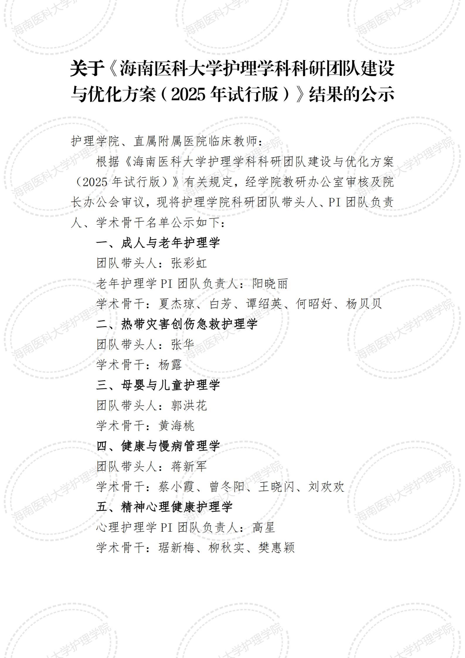 关于《taptap点点官网护理学科科研团队建设与优化方案(2025 年试行版)》结果的公示