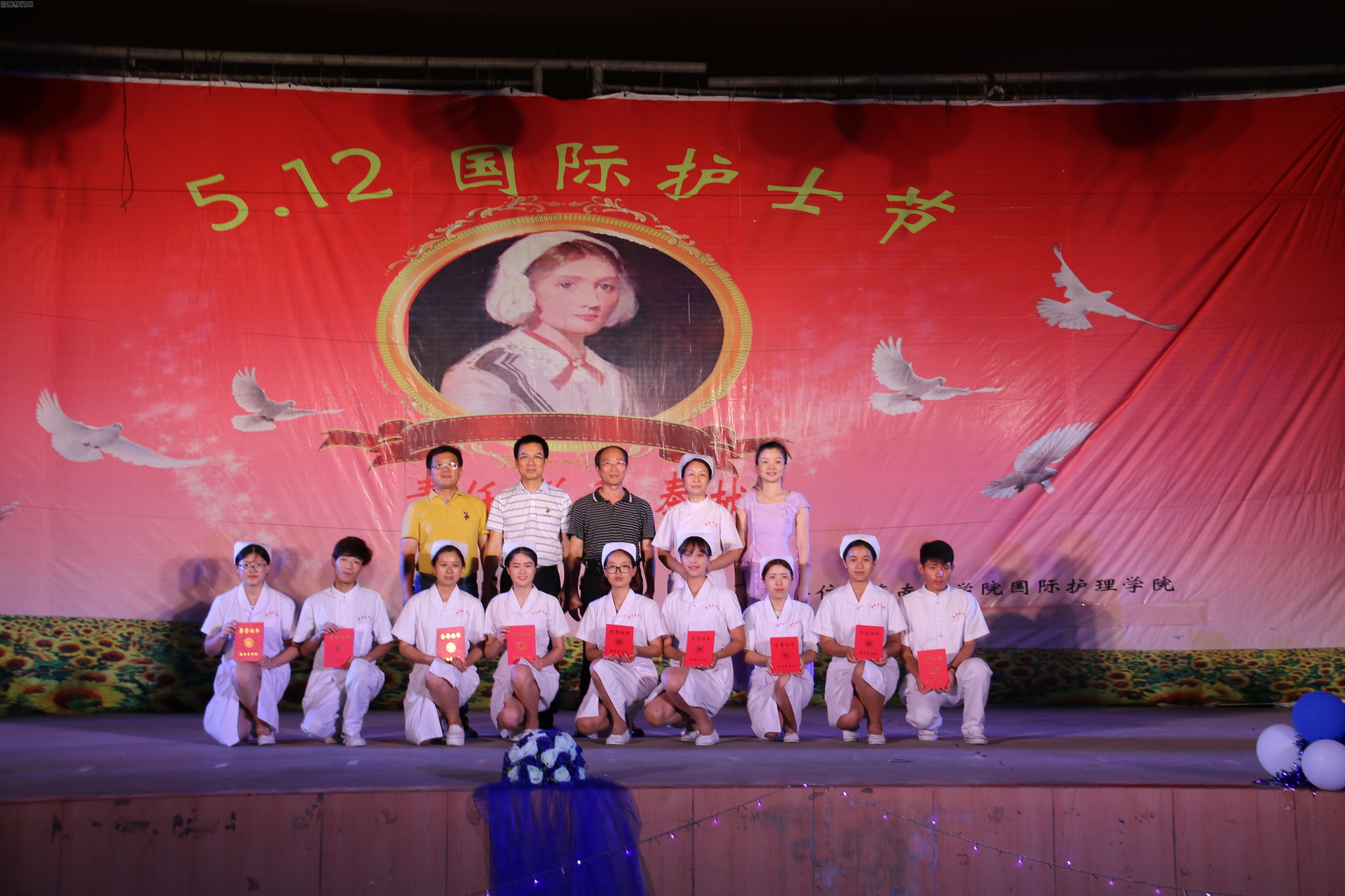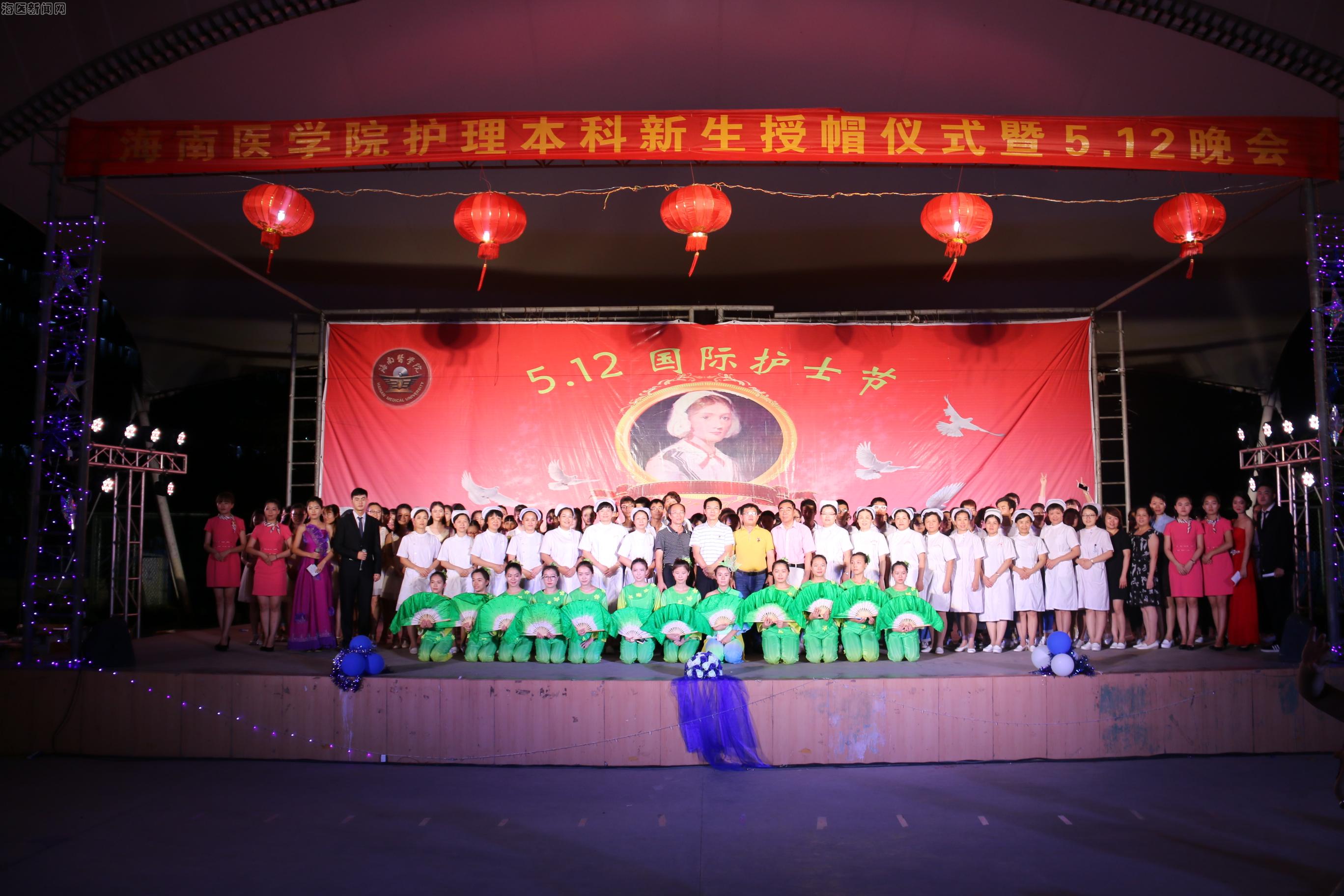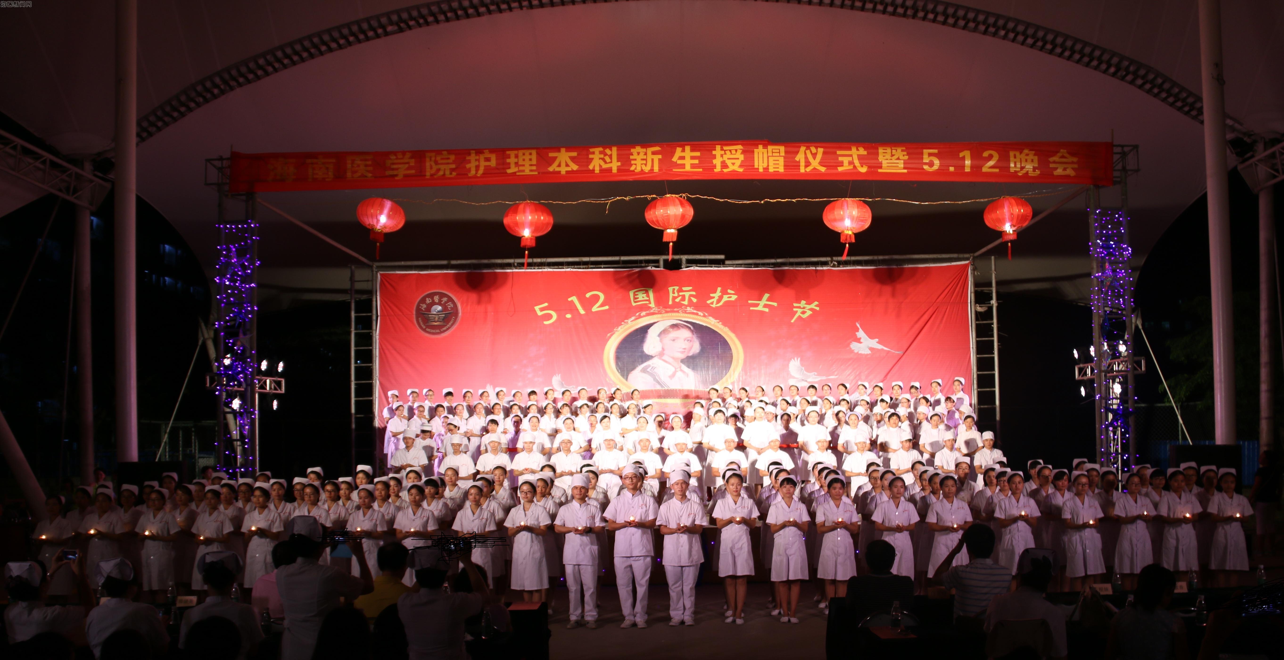2016年5月8日晚,海南医学院国际护理学院在风雨操场隆重举办了以“助力天使,让梦飞翔”为主题的2106年国际护士节文艺晚会暨15级护理专业新生授帽仪式。学校以及各附属医院的领导给予本次活动大力支持,海南医学院宣传新闻部部长王身坚部长、团委符琬聆书记、学工部副部长余伟新、海南医学院附属龙华医院护理部主任蒙莉萍以及副主任韩建美、王丹心、徐立、海南医学院附属新华医院护理部副主任王根妹、李敏香、国际护理学院邝家旺书记、张彩虹院长、阎国钢副院长以及全体师生参与了此次活动。