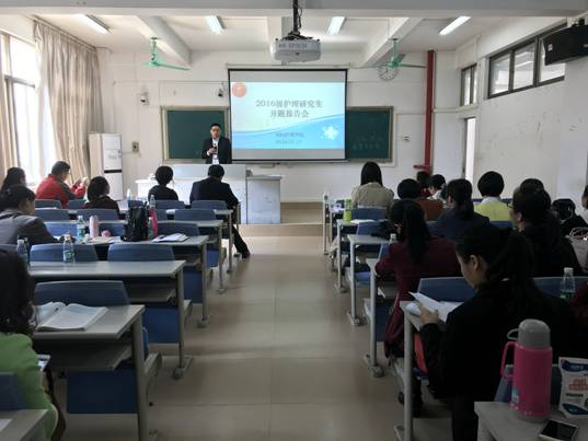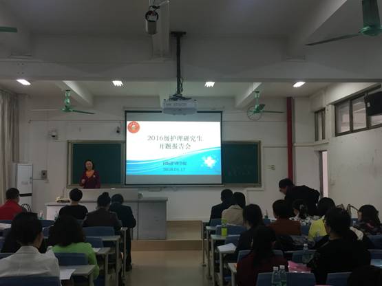 2018年1月17日上午8:00,海南医学院国际护理学院举行了2016级护理研究生开题报告会。本次开题报告由谢毅强教授担任考评组组长,常彩红副院长、李其富教授、朱毅博士、吴玲主任、张彩虹院长、张华副院长担任考评组成员。参加此次开题报告的还有研究生导师、国际护理学院教师以及全体护理研究生。