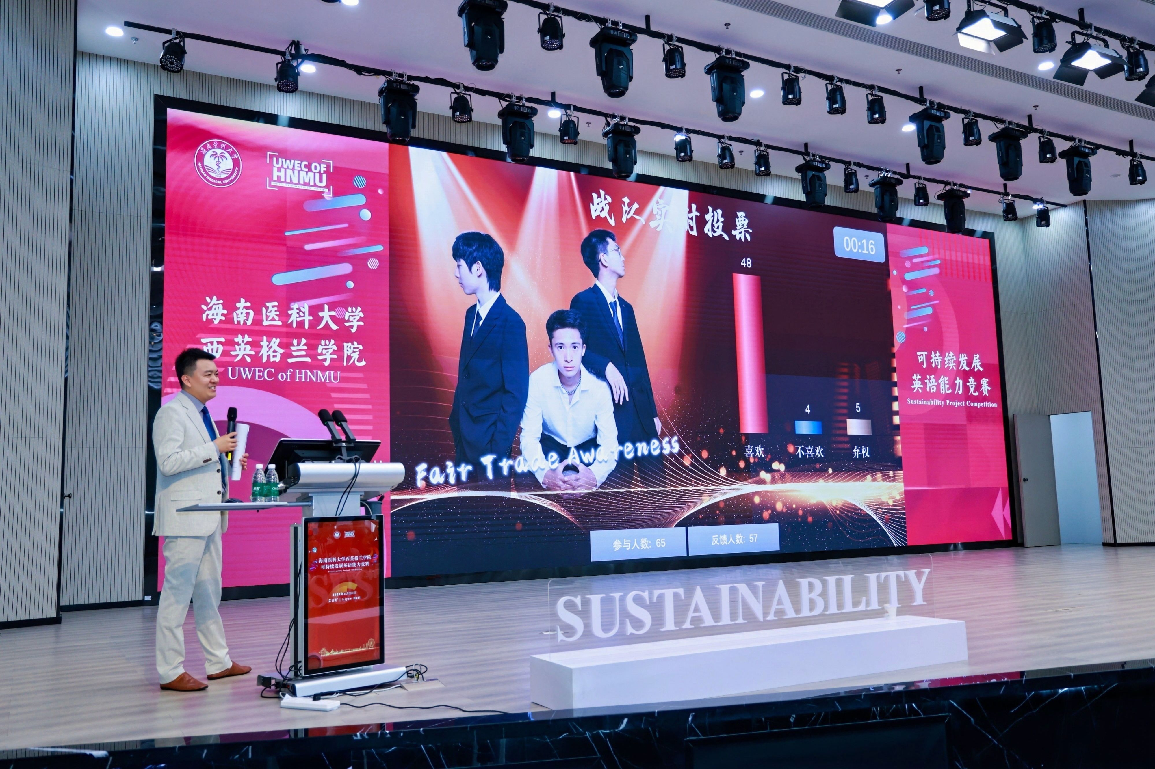 4月25日,立言厅内创意涌动,西英格兰学院中外合作办学学生“可持续发展(Sustainability)英语能力竞赛”在此圆满落下帷幕。