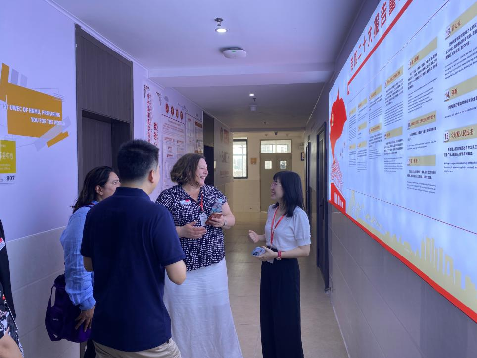 随后,李果果处长带领西英团队陪同西英格兰大学教学团走访参观学校的临床技能中心、西英智慧教室和学生公寓,详细介绍西英格兰学院的教学设施和条件。最后前往崇真楼8楼西英格兰学院办公区走访参观,在党建宣传栏介绍党建工作在中外合作办学中的重要地位,在学生驿站活动室交流和分享教育理念和教学经验。