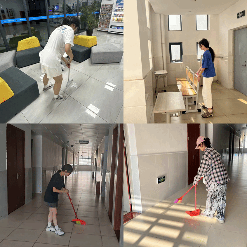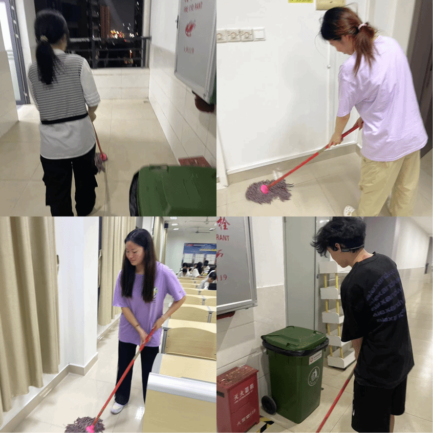 图片四 中心信息部的同学们在打扫宿舍大厅