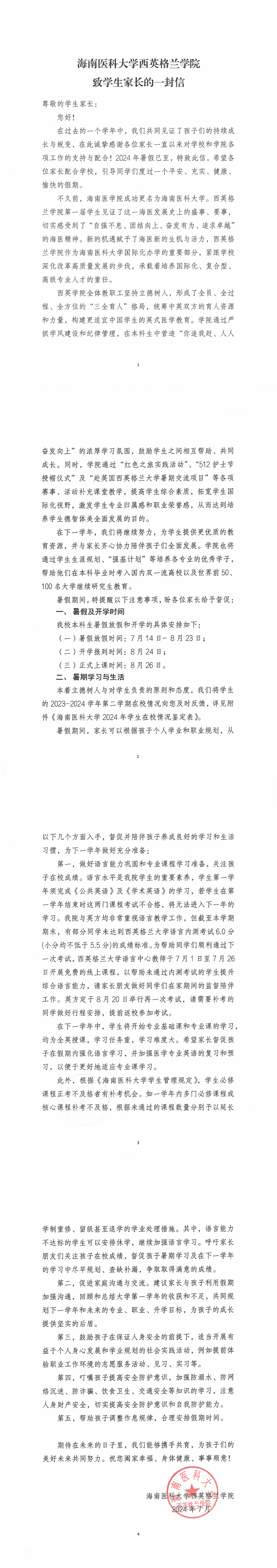 taptap点点官网西英格兰学院2024年暑期致2023级学生家长的一封信