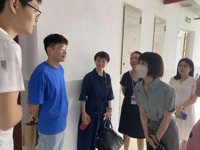 上午10点,伴随着热情的骄阳,学院老师悄悄地把提前准备好的蛋糕和小零食藏在了同学们上课的教室旁,一番精心准备后,学院的领导及老师们趁着同学们下课休息的时间,庄重又带着一点神秘地来到教室与同学们见面。
