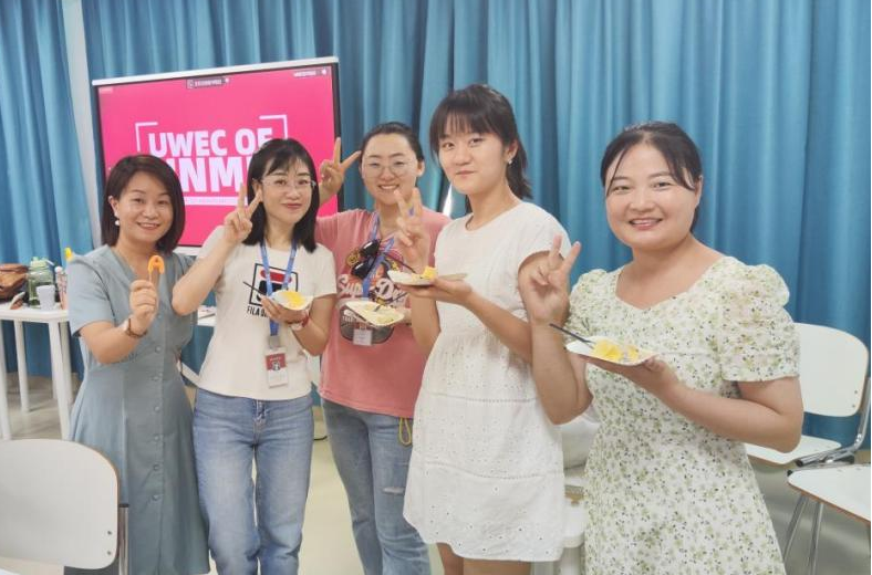 西英格兰学院深入学习贯彻习近平新时代中国特色社会主义思想,结合中外合作办学特点和学院实际情况,在英方副院长到任之际,组织教师深入学生,为学生送去暖心和惊喜,促进师生融合,并开展学生工作调研。6月1日上午,西英格兰学院领导及全体中英方老师给学院的首届硕士研究生们送去了别样的儿童节惊喜,为同学们准备了一场充满了温馨与关怀的节日活动。学院党委书记李果果、党委副书记徐芳芳、副院长Loretta Teng、副院长丁金东以及学院全体师生参加了此次活动。