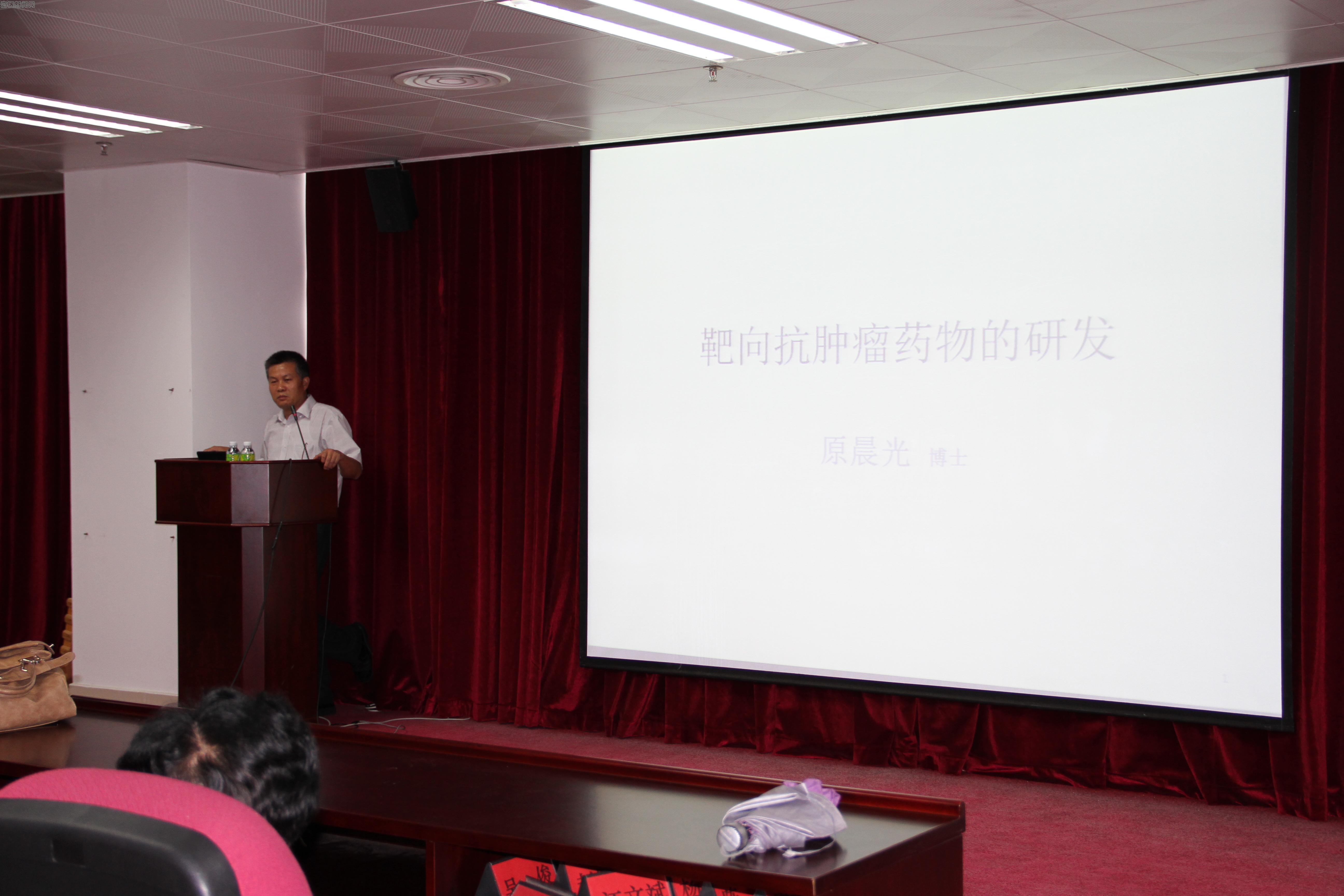 当日下午,原博士在图书馆七楼报告厅,为药学院、重点实验室的师生作了一场关于《靶向抗肿瘤药物的研发》的精彩报告,重点实验室张俊清主任主持,药学院合作企业领导也参加了报告会。报告会介绍了以抑制络氨酸激酶受体为靶点的抗肿瘤药物的进展和发展趋势,并结合具体的例子来阐明其研发历程。