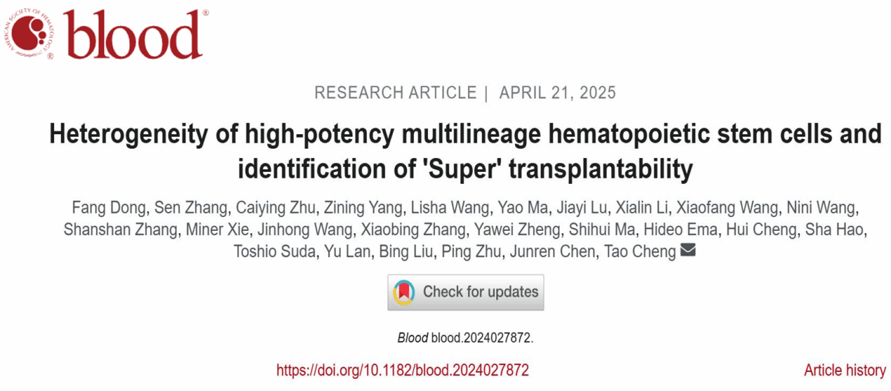 4月21日,海南省医学科学院青年PI朱才英与合作者在《Blood》在线发布了题为“Heterogeneity of high-potency multilineage hematopoietic stem cells and identification of ‘Super’ transplantability”的研究论文。该研究运用大规模小鼠HSC单细胞移植及连续移植实验,首次发现具有可持续跨代自我更新并维持多谱系分化潜能的“超级”HSC(Super-class HSC),并揭示“超级”HSC的分子特征。