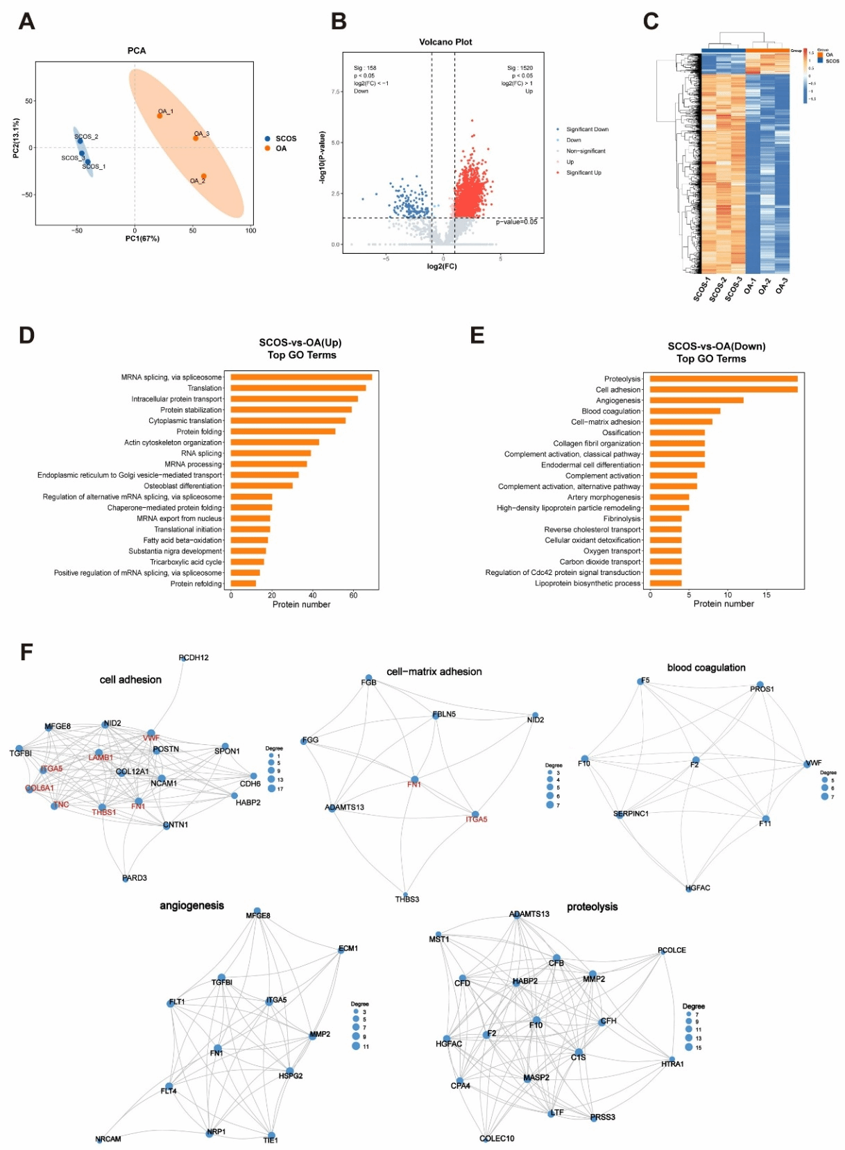 图2. 微量蛋白质组学揭示了 SCOS 与 OA 患者支持细胞的蛋白质表达谱