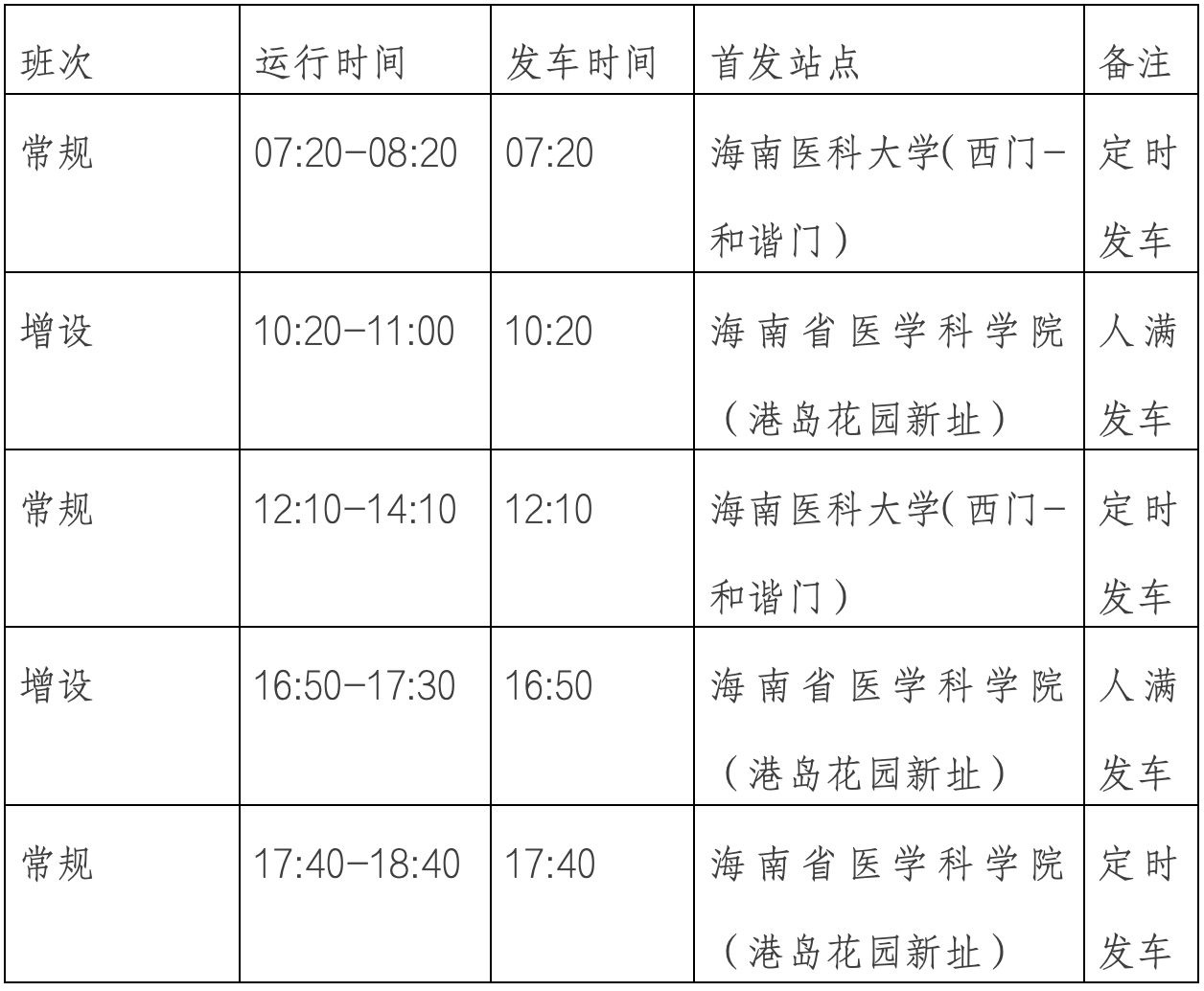 2. 如有特殊乘车需求,请至少提前1天与医科院综合事务部沟通,联系电话:0898-66970921。