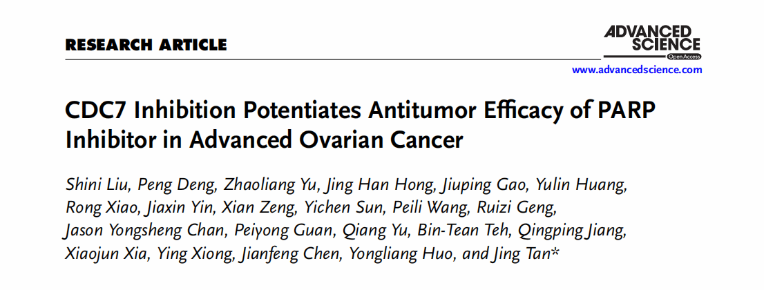 科研速递!Advanced Science‖谭静研究团队发现CDC7抑制剂可协同增强PARP抑制剂的抗肿瘤疗效