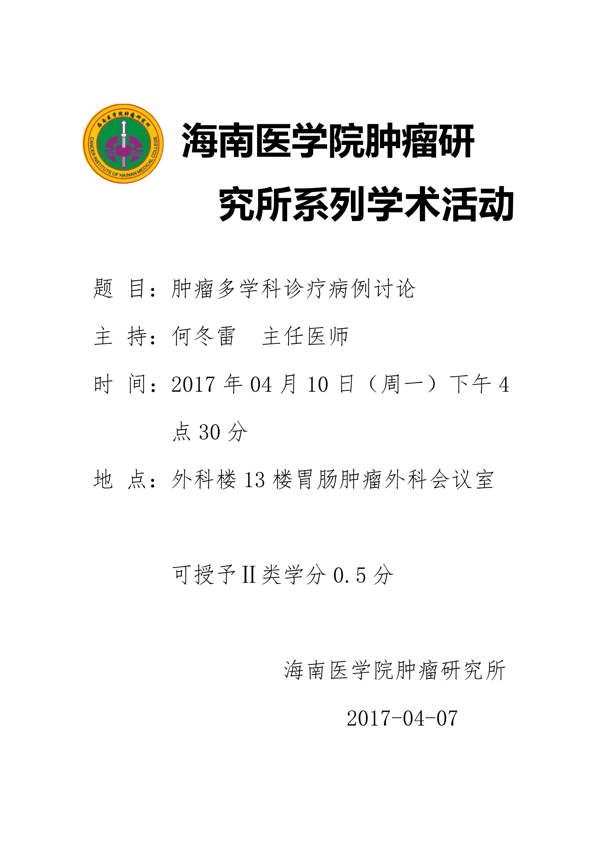 下一篇:海南医学院肿瘤研究所系列学术活动20170327