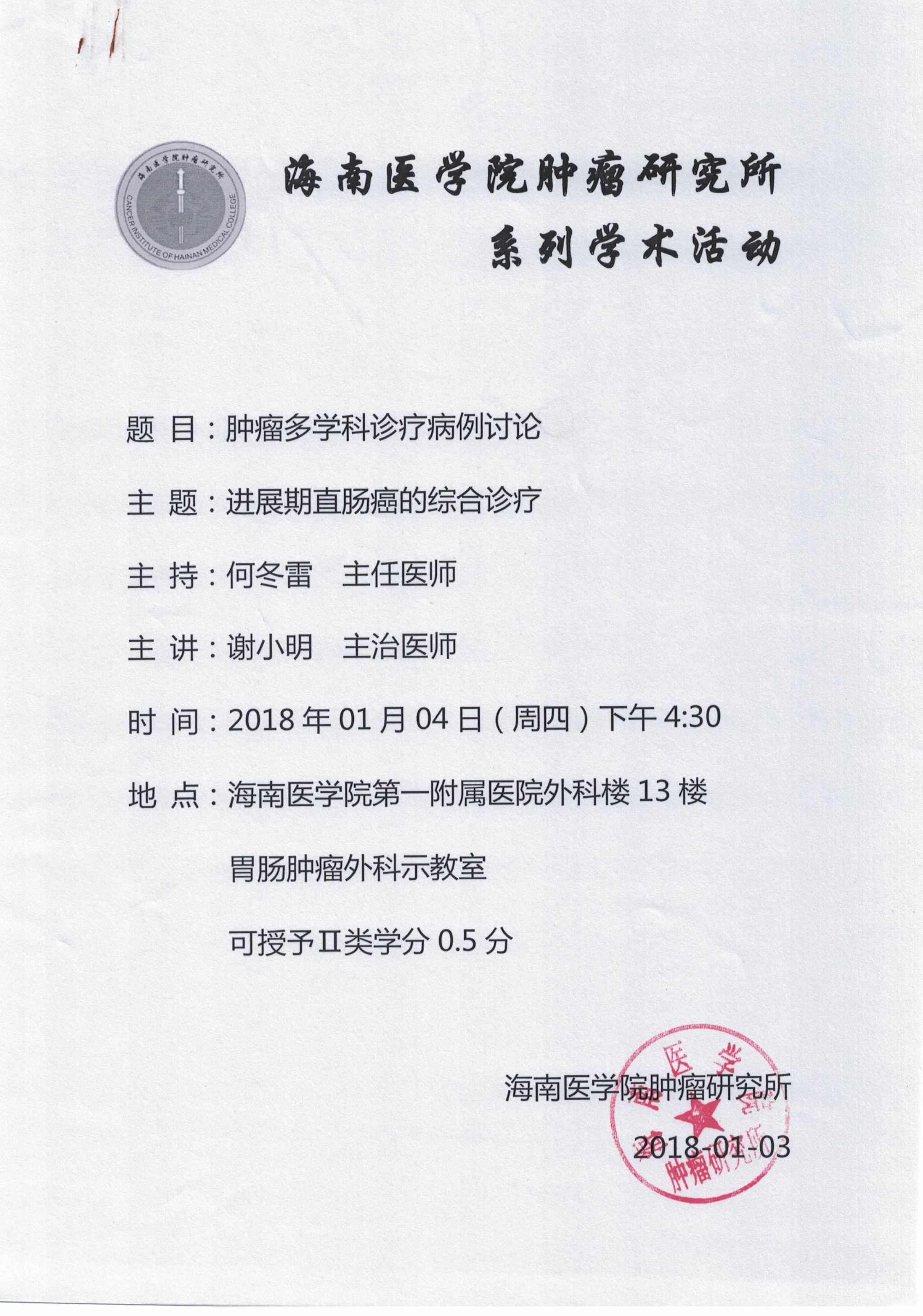 海南医学院肿瘤研究所系列学术活动20180104