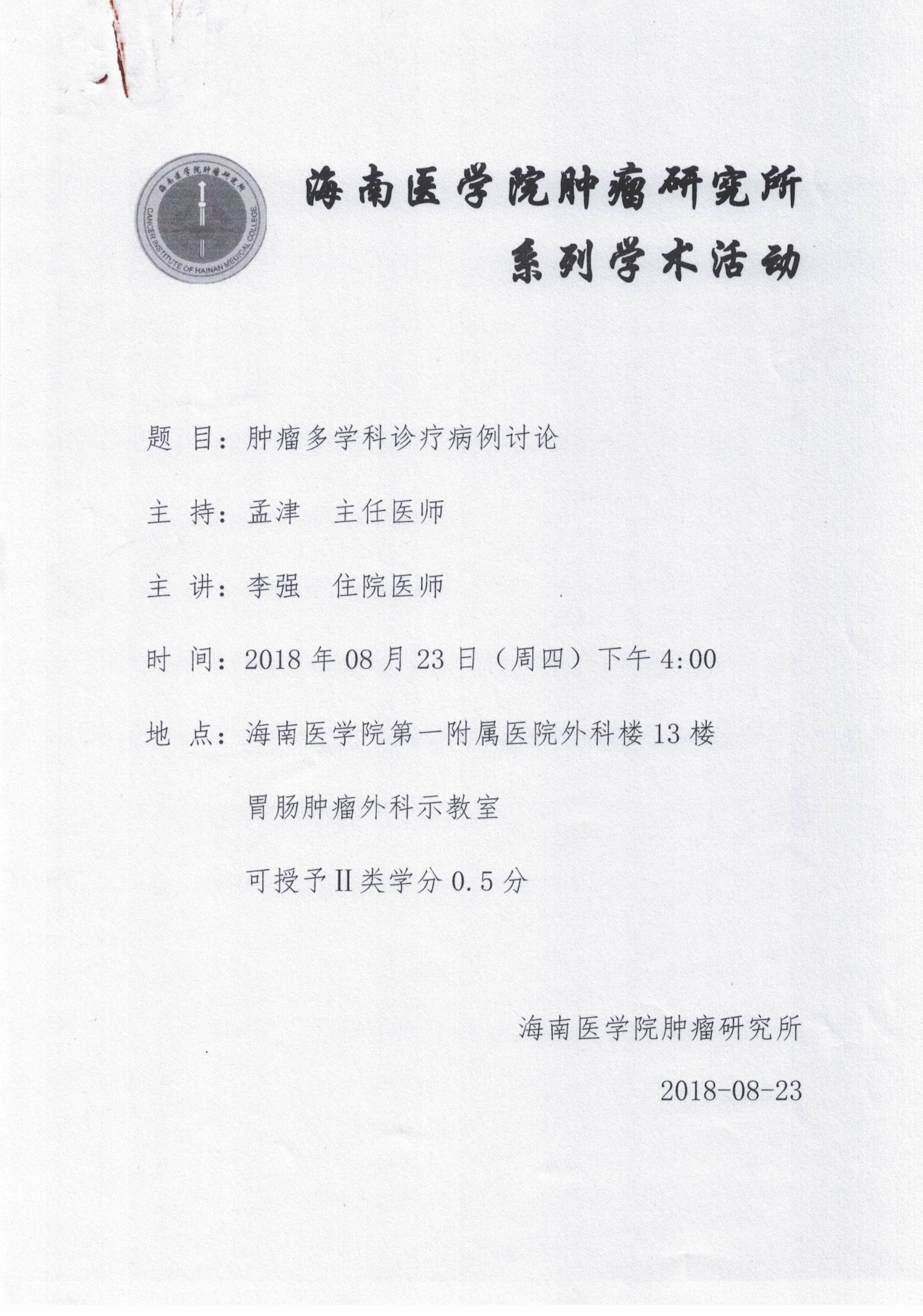上一篇:海南医学院肿瘤研究所系列学术活动20180903