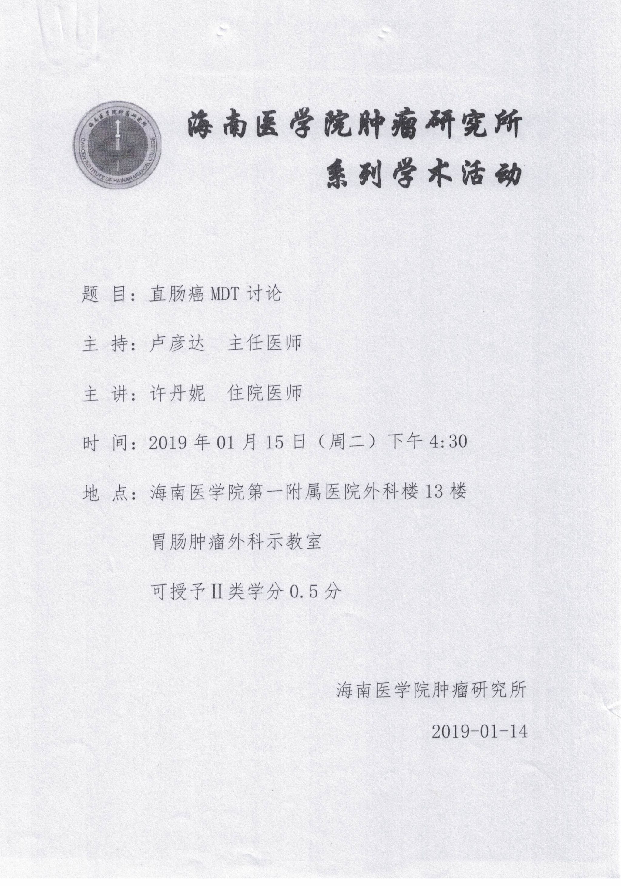 海南医学院肿瘤研究所系列学术活动20190115