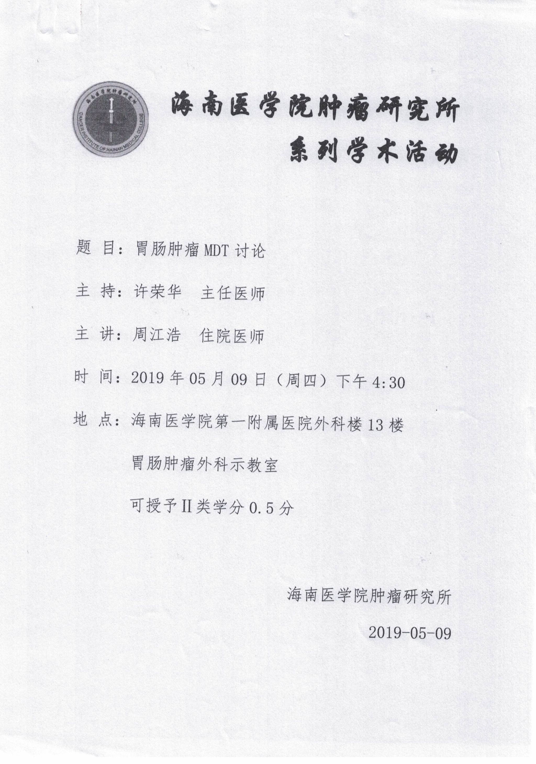 海南医学院肿瘤研究所系列学术活动20190509