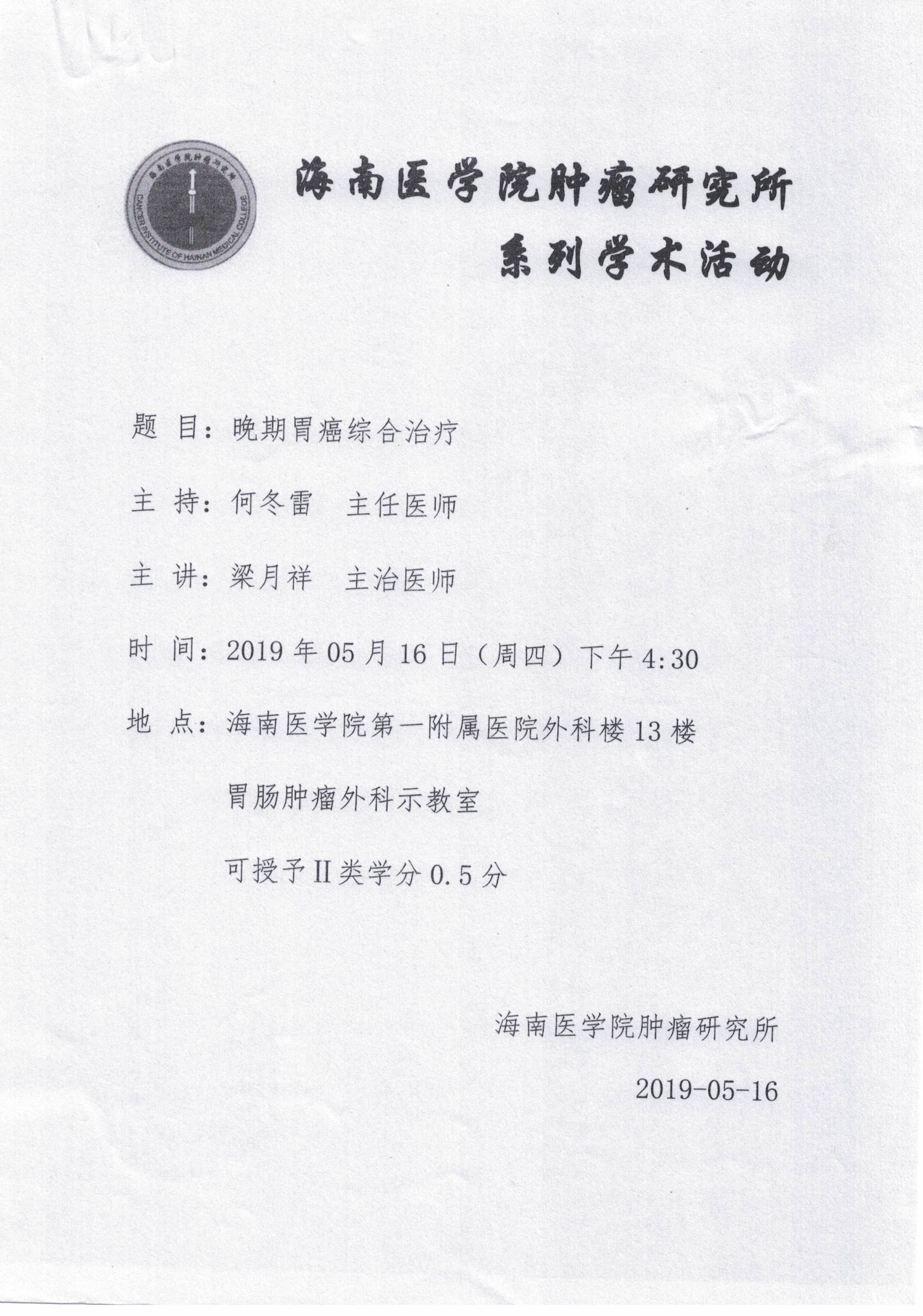 海南医学院肿瘤研究所系列学术活动20190516