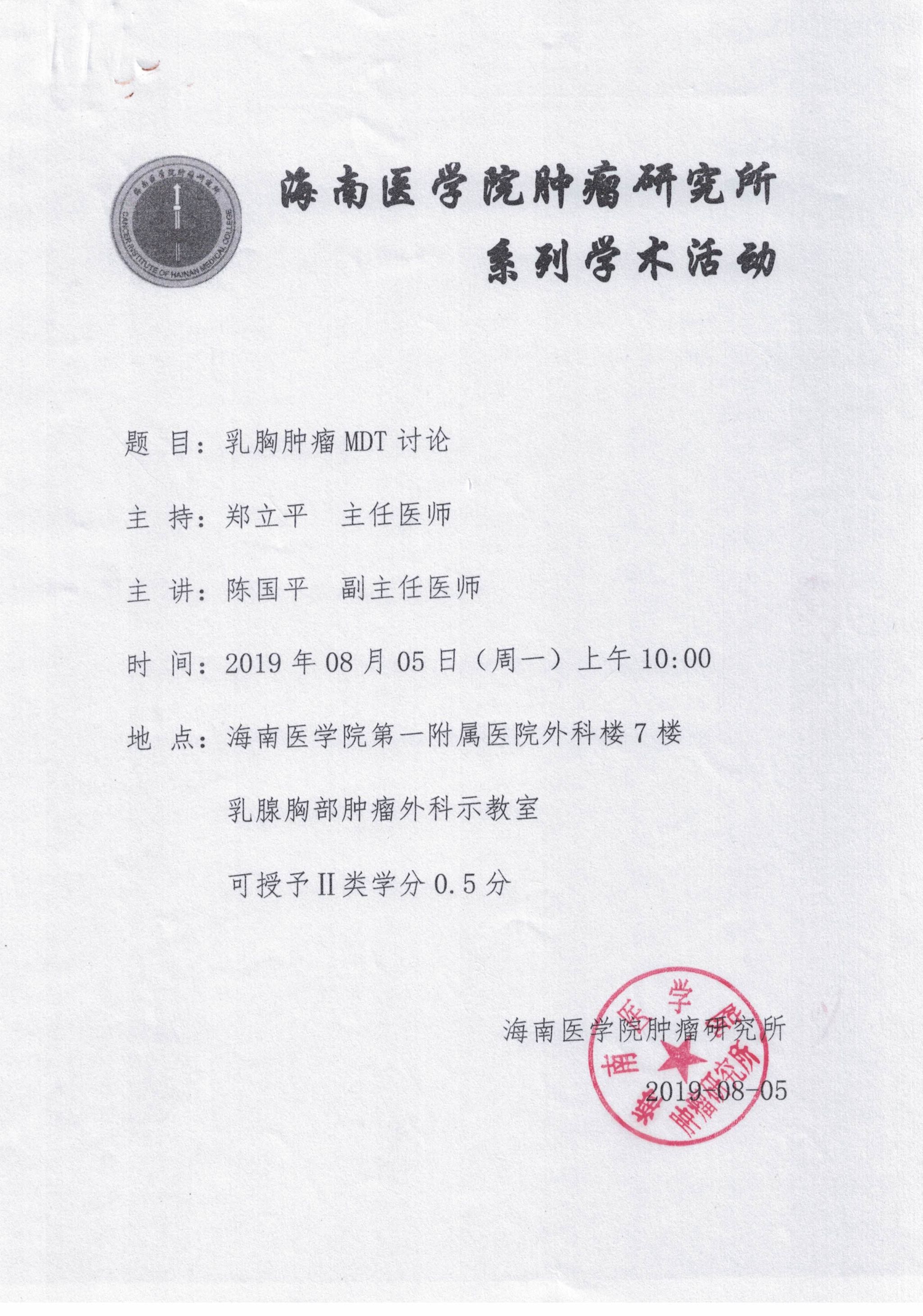 海南医学院肿瘤研究所系列学术活动20190805