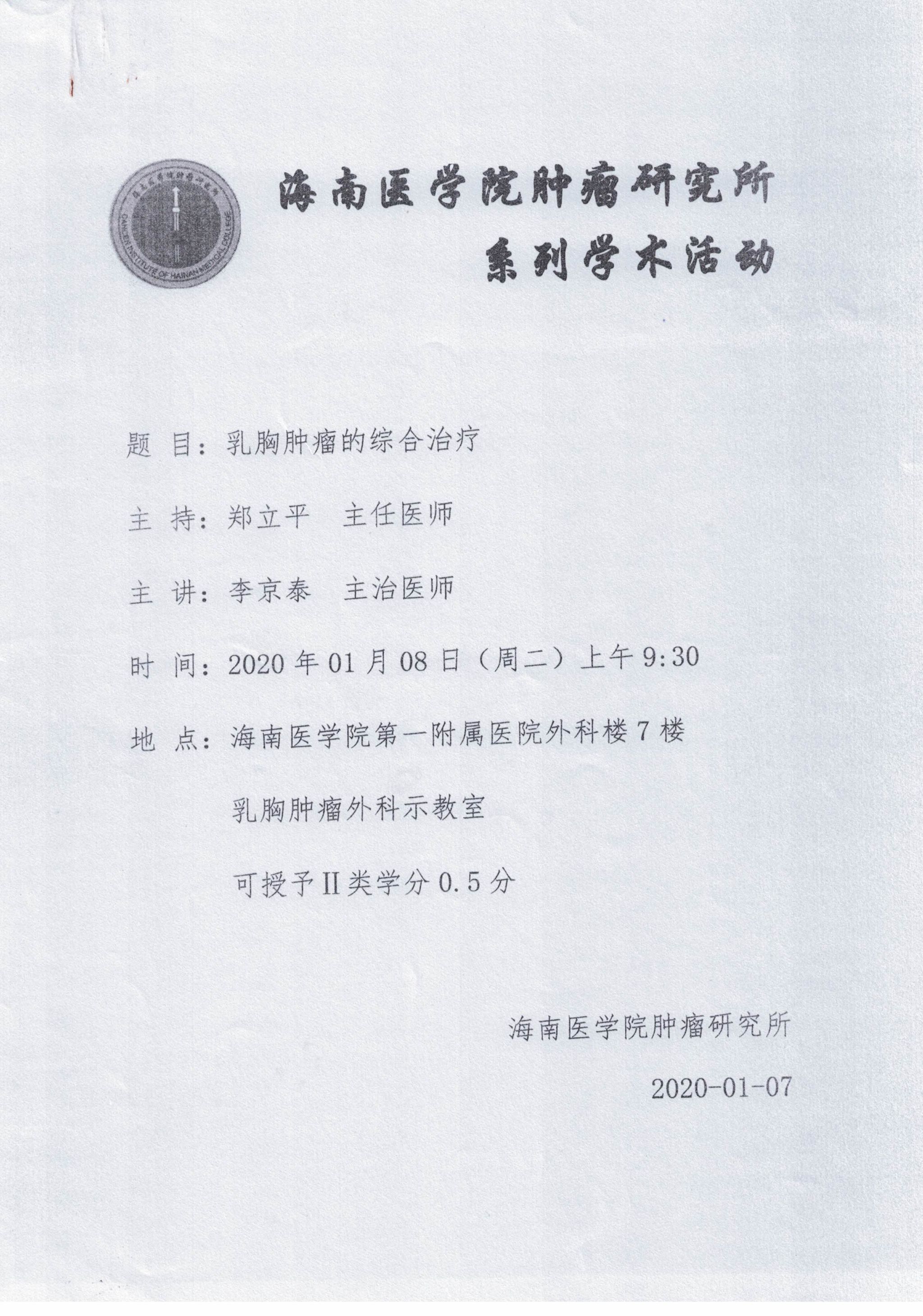 海南医学院肿瘤研究所系列学术活动20200108