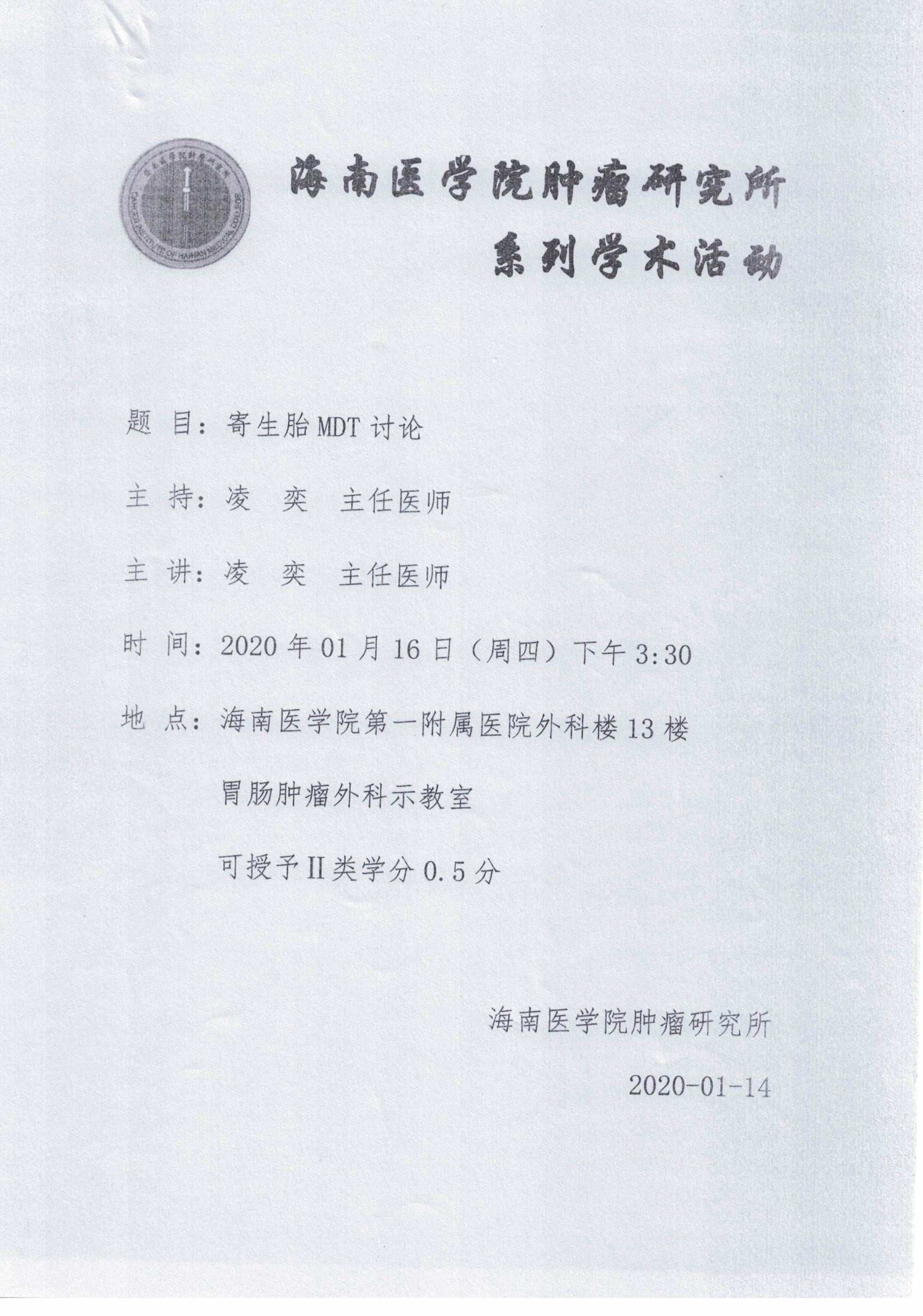 海南医学院肿瘤研究所系列学术活动20200116