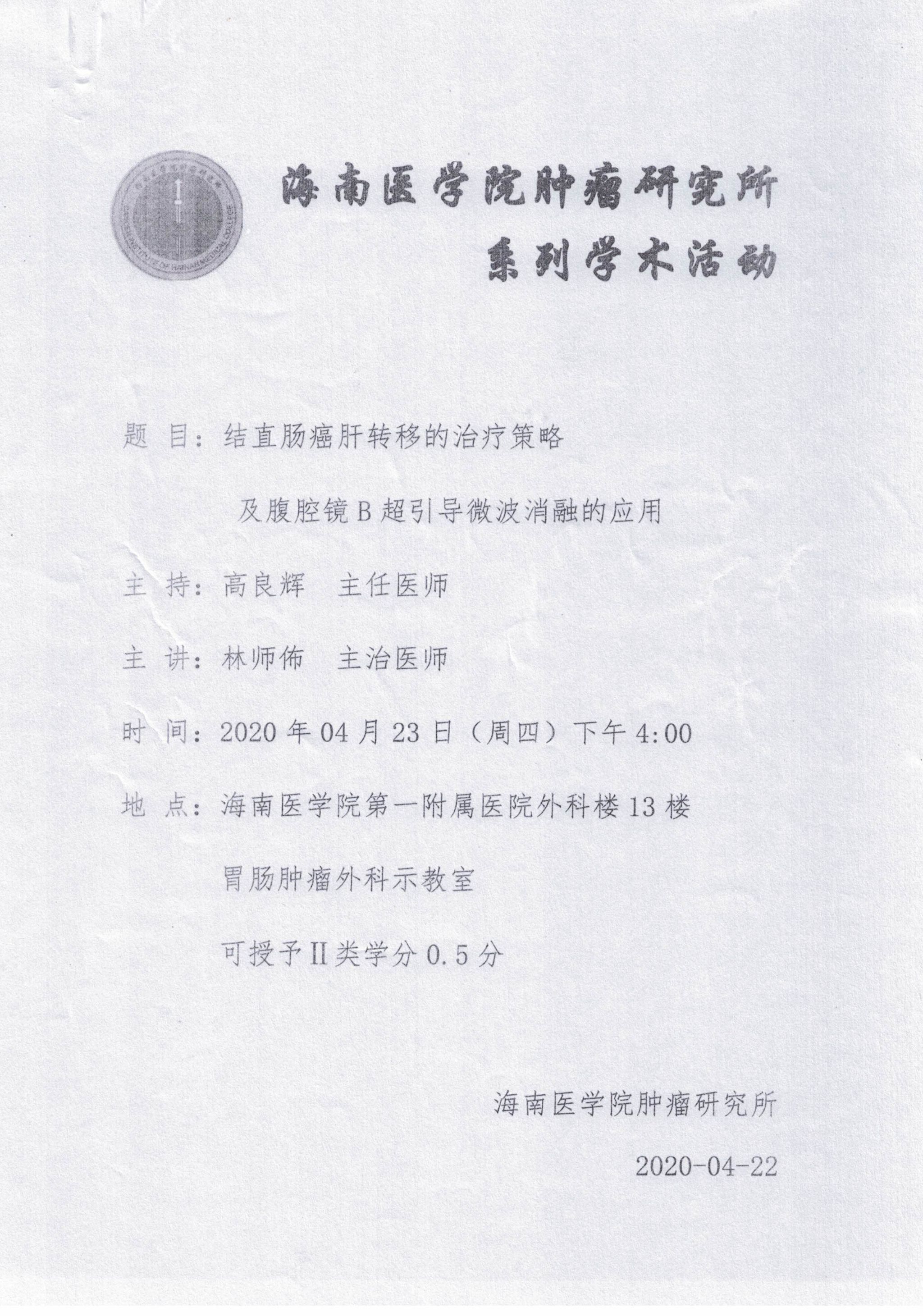 下一篇:海南医学院肿瘤研究所系列学术活动20200413