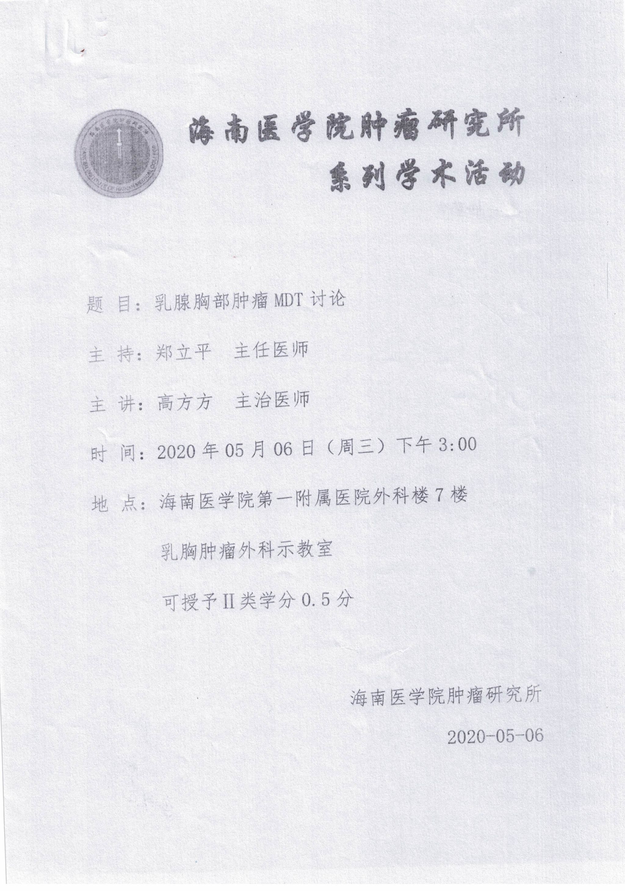上一篇:海南医学院肿瘤研究所系列学术活动20200515