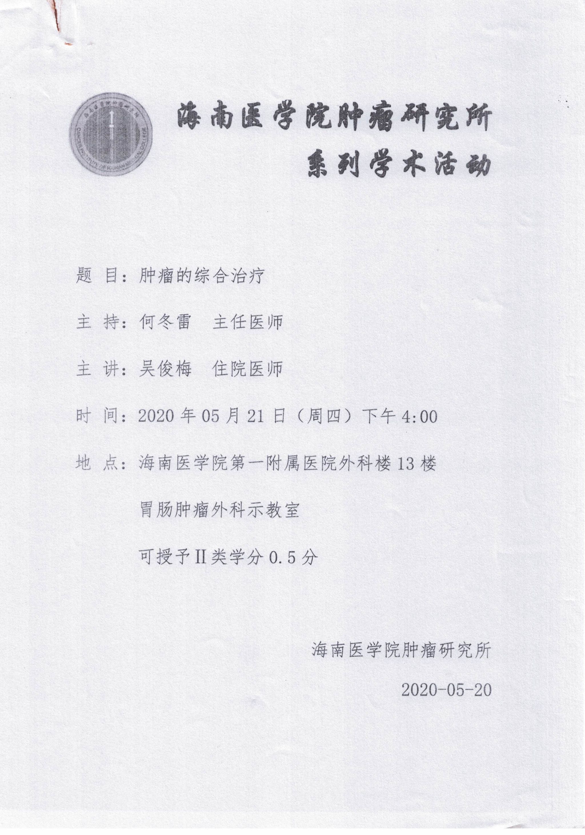 下一篇:海南医学院肿瘤研究所系列学术活动20200515