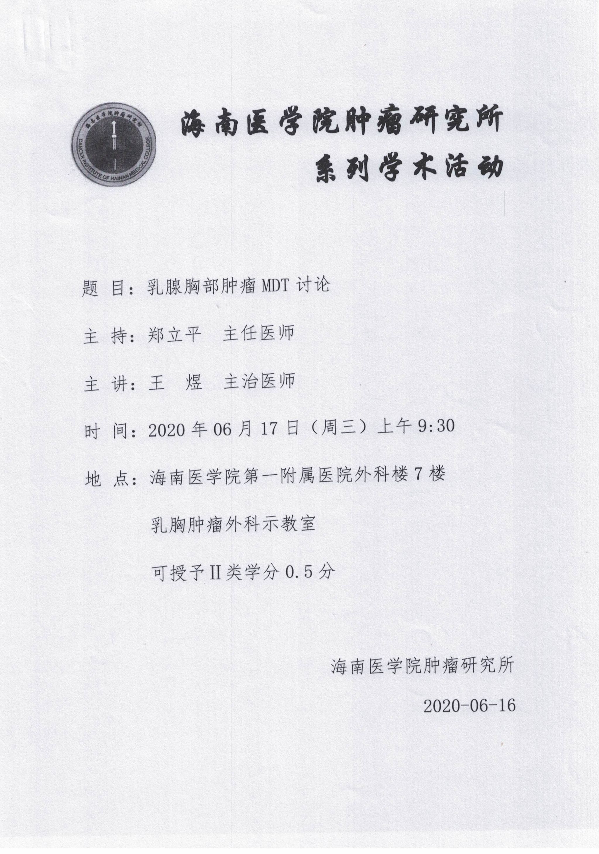海南医学院肿瘤研究所系列学术活动20200617