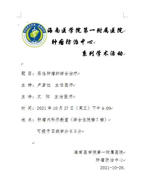 下一篇:海南医学院肿瘤研究所系列学术活动20211013