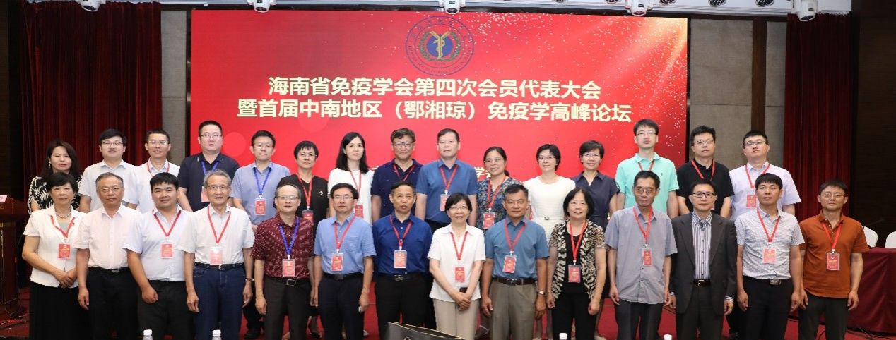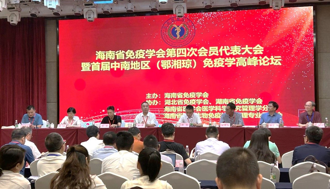 海南省免疫学会第四次会员代表大会暨首届中南地区(鄂湘琼)免疫学高峰论坛2023年7月13在海口隆重召开。中国免疫学会副理事长兼秘书长黄波教授、海南省科协副主席徐伟、海南医学院第一附属医院党委书记顾硕教授、湖北省免疫学会理事长吴雄文教授、湖南省免疫学会理事长邹义洲教授、海南省免疫学会理事长郑少江教授等领导嘉宾出席会议并致辞,海南省免疫学会党支部书记、秘书长王华民教授主持会议。