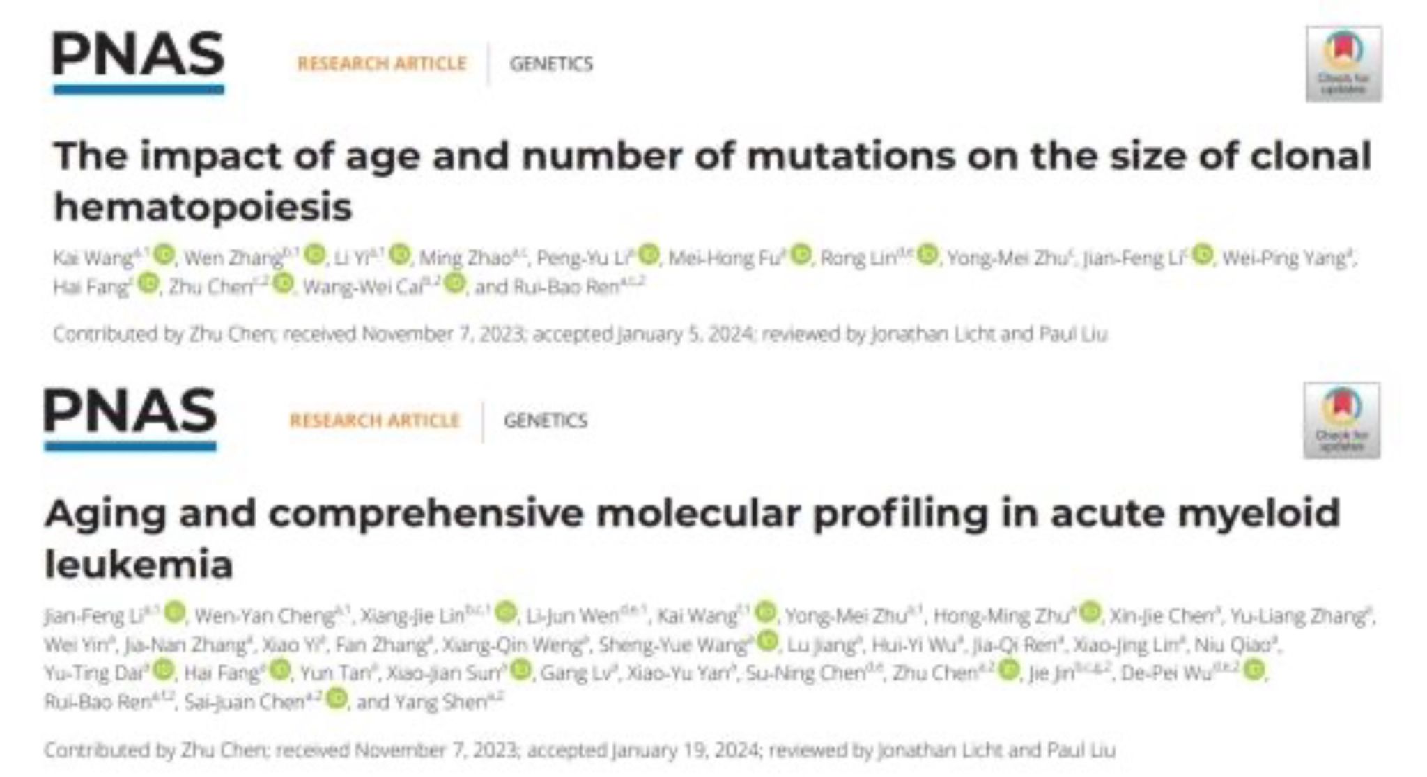 近日,taptap点点衰老与肿瘤国际研究中心与上海交通大学医学院附属瑞金医院上海血液学研究所任瑞宝团队、海南医学院基础医学与生命科学学院蔡望伟团队、上海交通大学医学院附属瑞金医院上海血液学研究所沈杨和陈赛娟团队、浙江大学附属第一医院金洁团队、苏州大学附属第一医院吴德沛团队合作,在著名学术杂志《美国科学院院刊》(PNAS)背靠背发表2篇题为“The impact of age and number of mutations on the size of clonal hematopoiesis”...