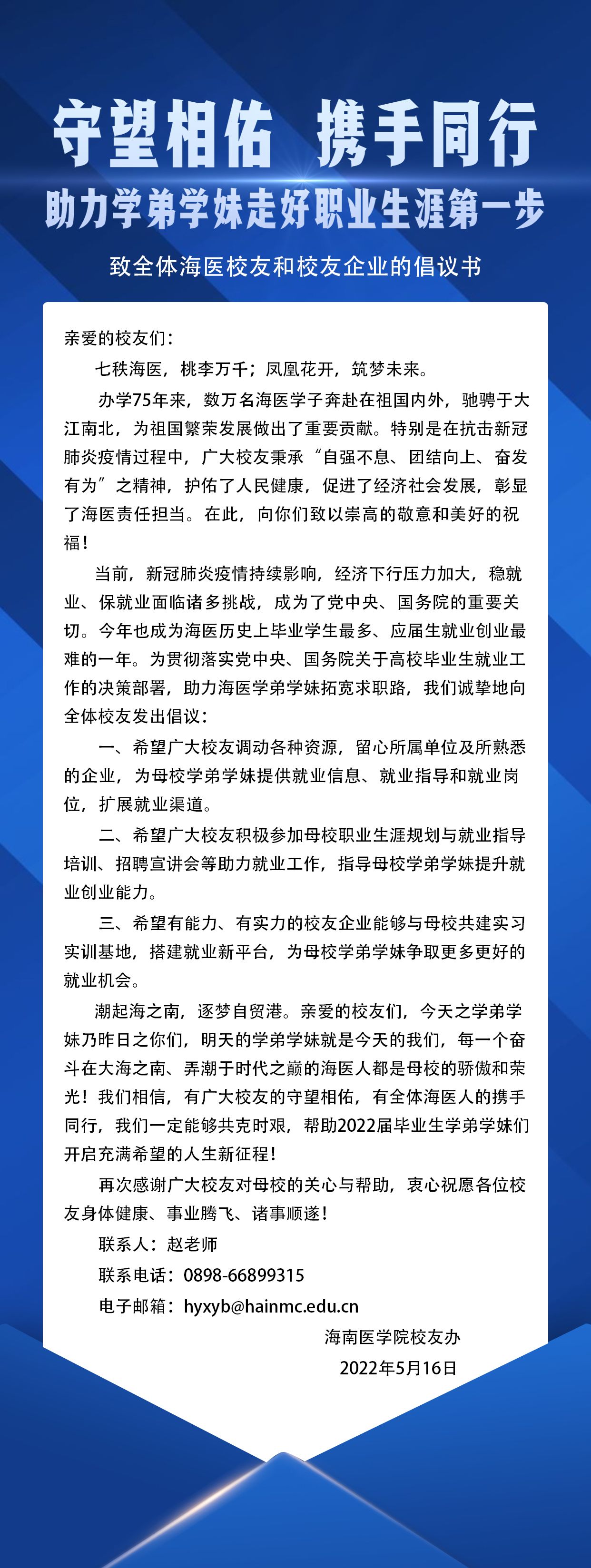 联系人:赵老师,联系电话:0898-66899315,电子邮箱:hyxyb@hainmc.edu.cn。