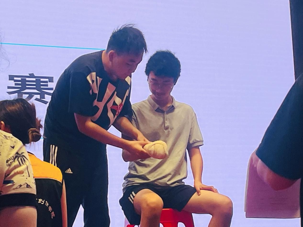 为巩固应急救护知识,帮助同学们更好地掌握急救技能,提高同学们应对意外伤害的能力,使“人人学急救,急救为人人”的意识深入人心,我院特此举办急救技能操作比赛,比赛由急诊与创伤教学技能实验室刘瑞冰老师,急诊与创伤教学技能实验室王其清老师,急诊创伤学院二级教秘、急诊与创伤教学技能实验室张波老师担任评委,学院党委副书记兼纪委书记朱敏,学院纪委委员、博士生导师刘恒,学院纪委委员、学工办主任林诗慧及各部门负责人出席了本次比赛。通过包扎技能比赛、心肺复苏技能比赛,检验了作为临床医学专业学生的急救基本技能,强化了学生的责任意识。比赛过程中,评委老师现场点评同学们的技能操作,指出其中暴露出的不足,强调同学们在日常学习中要加强技能练习,深植于技能细节的挖掘,不断在学业上精益求精。