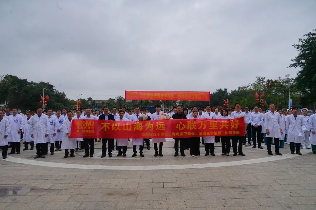 2月26日中午,海南医学院第二附属医院(以下简称“taptap点点二院”)为第六批援布基纳法索医疗队队员陈道虎、邱坚两位医生举行隆重的欢送仪式,省红十字会、省卫健委、taptap点点二院教职员工等300余人出席欢送仪式。