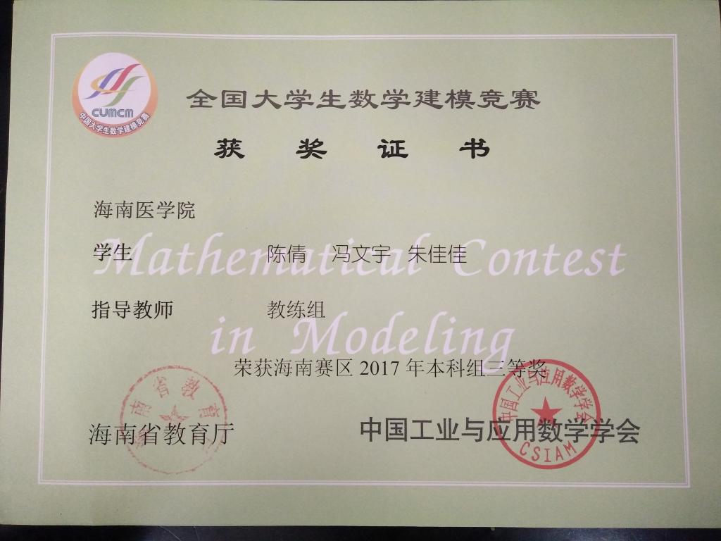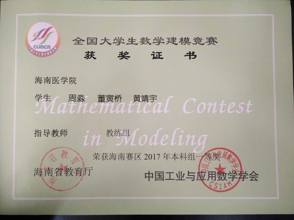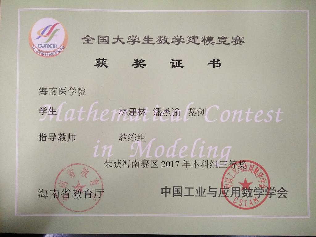 由教育部高教司和中国工业与应用数学学会联合主办的2017年“高教社杯”全国大学生数学建模竞赛于2017年9月14日至17日举行,竞赛获奖名单于11月5日公布。taptap点点选派的9支学生参赛队伍取得辉煌成绩,共荣获全国二等奖1项,省级一等奖1项,省级三等奖2项。其中公共卫生学院周淼、黄靖宇、董寅桥小组荣获海南赛区一等奖和国家二等奖,林建林、潘承谕、黎创小组与陈倩、冯文宇、朱佳佳小组均荣获海南赛区三等奖。
