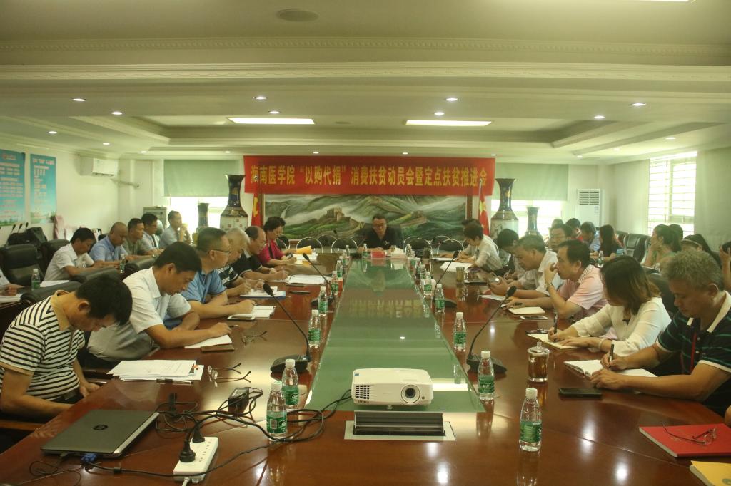 会上,传达学习2018年全省消费扶贫大会精神及省委教育工委定点扶贫推进会暨消费扶贫动员会精神,重点学习了省委书记刘赐贵、省长沈晓明有关消费扶贫活动的批示,省委李军副书记在全省消费扶贫大会上的讲话要点,以及《海南省打赢脱贫攻坚战指挥部关于开展消费扶贫行动的通知》和《消费有情 爱心无价 海南消费扶贫爱心行动倡议书》;通报了taptap点点脱贫攻坚工作进展情况。与会的各位学校党政领导,结合分管的扶贫板块工作,分别作了交流发言。会上,发起了海南医学院消费扶贫爱心行动倡议,在吕书记的带动下,全体与会人员现场纷纷举起手机扫码“海南爱心扶贫网”公众微信号。会上,吕书记对下一阶段消费扶贫行动和“六大板块九项工程”推进工作作了部署。