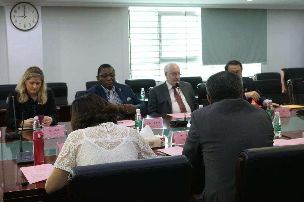 10月16日上午,海南医学院与内布拉斯加大学医学中心座谈会在学校行政办公楼第一会议室举行。参加座谈会的有海南医学院杨俊校长、孙晓宁副校长及学校教务处、国际交流合作处、国际护理学院、公共卫生学院、国际教育学院、第一临床学院等部门负责人,内布拉斯加大学医学中心学术事务资深副校长、研究生院院长得勒·戴维斯,医学院院长布拉德·布瑞缇根,内布拉斯加大学内马哈分校国际项目助理副校长简·梅萨,Fred&Pamela巴菲特癌症研究中心国际关系办公室主任付凯以及大学亚太地区发展项目部副主任汉娜·唐。座谈会由孙晓宁副校长主持。