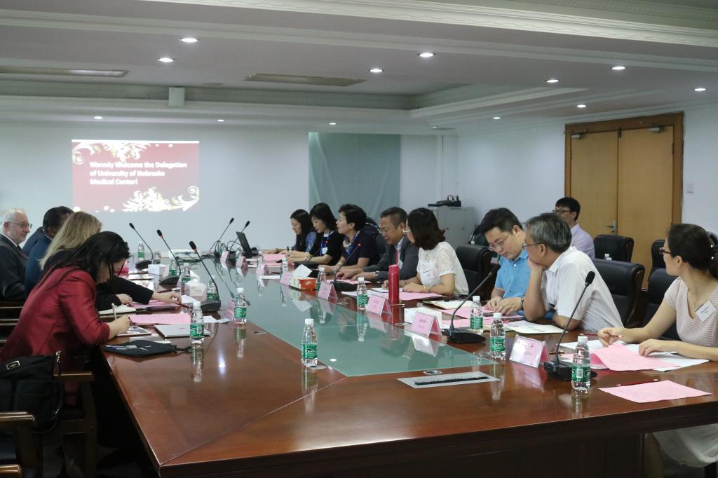 杨俊校长对内布拉斯加大学代表团的到来表示欢迎,并从发展历程、学院与部系的分布、专业与规模、学生与教职工以及特色发展优势等方面向来宾介绍了海南医学院的基本情况。杨俊校长表示,海南医学院作为海南省唯一一所医学院校,占据得天独厚的地理条件—海南作为中国唯一一个地处亚热带地区的省份,海南医学院积极发展热带医学特色专业,同时海南省作为旅游国际贸易岛屿,更应加强国内外高校之间的交流合作,诚挚希望双方在已有的合作基础上可以达成进一步的合作意向。
