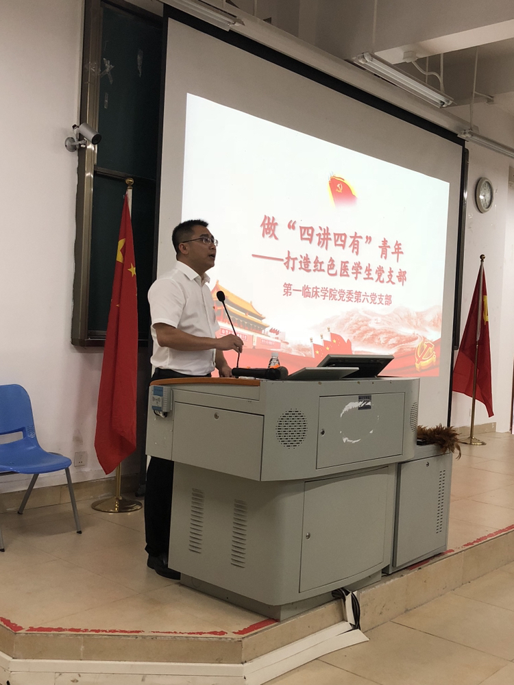 会上,张伟部长首先简要介绍taptap点点党建工作和扶贫工作的特色及做法,接着张万科副书记以《做“四讲四有”青年——打造红色医学生党支部》为题就第一临床学院党委第六党支部“党建+学生”做法进行了介绍。张万科表示,通过搭建党员红色读书会、党员应急救护队、党团医疗服务队等三个“党建+学生”平台培育红色医学生;通过打造“唱响国魂”红歌大赛、“三月三”竹竿舞比赛、党员演讲比赛、生涯规划大赛等“党建+学生”品牌活动,传唱红色金曲,唱响党员本色,激发爱国热情,让学生党员勇当先锋,做好表率;通过建立党员之家、党建工作室增强党员归属感和凝聚力,实现党支部党建标准化建设,做到活动有场地、工作有抓手、党员先锋模范作用凸显。