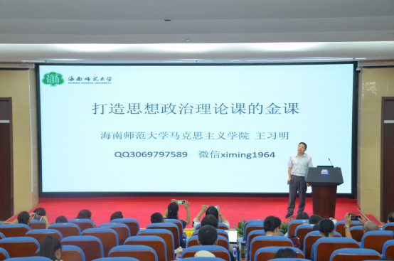 海南师范大学马克思主义学院院长王习明教授以《打造思想政治理论课的金课》为主题,以新时代高校思政理论课教学工作基本要求为根本,介绍了该校思政理论课金课的四项标准和六条方法。
