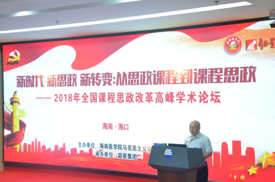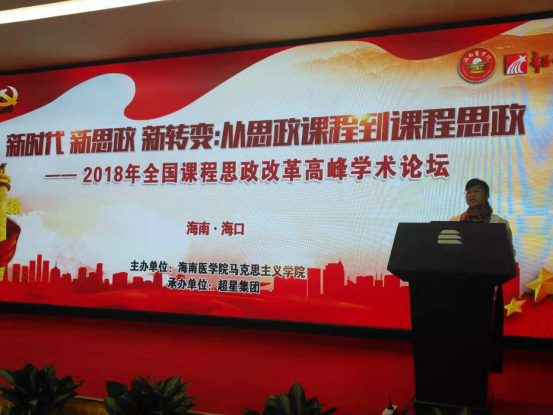 2018年11月10日,由海南医学院马克思主义学院(人文社会科学部)主办,超星尔雅集团承办的“新时代 新思政 新转变:从思政课程到课程思政——2018年全国课程思政改革高峰学术论坛”在海口举行。来自上海大学、中国医科大学、电子科技大学、海南师范大学、海南医学院等20多所高校的近百名专家学者齐聚海口,共商全员育人、全过程育人、全方位育人这一重要议题。