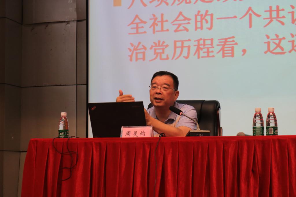 中共海南省纪委海南省监委派驻省教育厅纪检监察组组长、省教育厅党组成员、省委教育工委委员周灵均同志应邀作专题报告,他以《全面从严治党新任务和我们的责任》为题,从“八项规定改变中国”、“波澜壮阔的治党历程”、“全面从严治党新要求”、“新海南教育系统政治生态”、“知识分子的责任担当”等五个方面,全面回顾了我党从严管党治党的历程,重温了十九大全面从严治党的新要求,全面分析了我省教育系统政治生态存在的问题及原因,提出以率先夺取教育系统反腐败斗争压倒性胜利为优先发展教育事业提供保障的思路与对策。希望高校知识分子,要有责任与担当,把率先搞好教育系统党风廉政建设,作为投身教育事业、建设自由贸易试验区和中国特色自由贸易港、建设美好新海南的职责和使命!