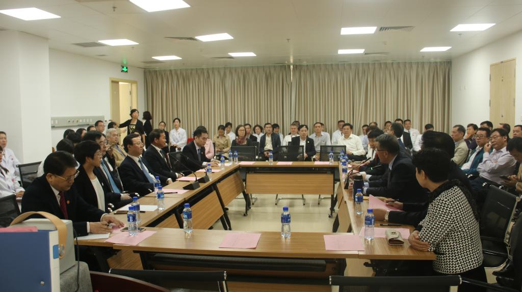 揭牌仪式结束后,在门诊楼5楼会议室举行了“海南省人民医院划为海南医学院直属附属医院见面会”,校院双方领导班子成员及党政机关中层干部进行了座谈交流。