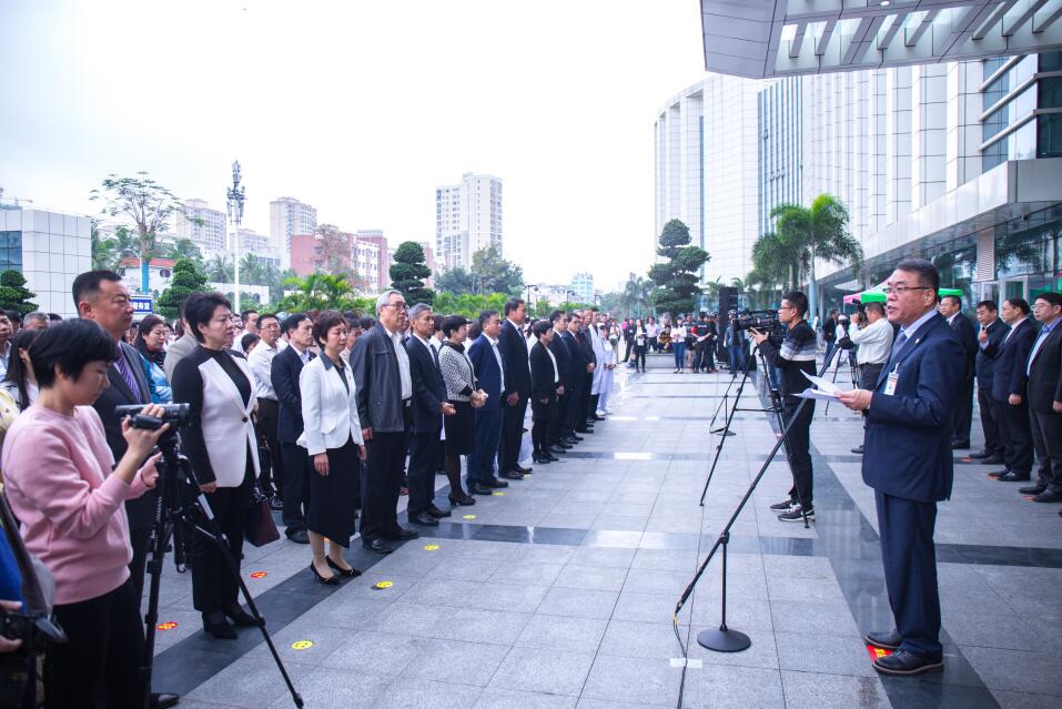 赵建农在揭牌仪式上致辞时表示,回溯百年,筚路蓝缕,海南省人民医院的成长史就是一部海南医疗事业的发展史,也是海南改革开放辉煌成就的见证史。新时代,海南省委省政府批准,海南省人民医院划为海南医学院直属附属医院,意义重大。在改革开放新征程中,我们将不忘初心、牢记使命、珍惜机遇、找准定位,与海南医学院携手同行,致力于打造海南高层次医疗卫生人才培养中心、国家区域医疗中心、海南国际医疗中心,更好地服务于海南人民群众,为推动“健康海南”战略实施,助力海南自由贸易试验区和中国特色自由贸易港建设砥砺前行、贡献力量