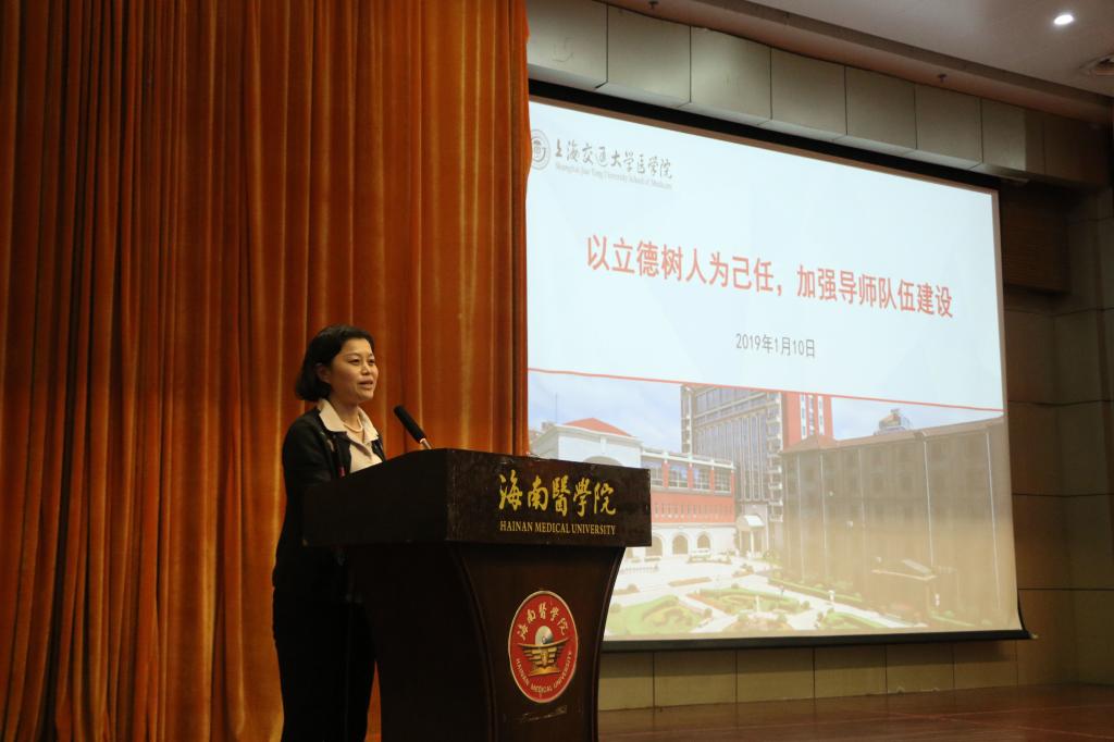 2019年1月10日下午,海南医学院与上海交通大学医学院联合举办的专题师资培训会在国际报告厅举行。海南医学院杨俊院长、上海交通大学医学院吴正一副院长等出席培训会。来自上海交通大学医学院20余位领导和专家学者,以及海南医学院600余位师生员工参加了培训会。