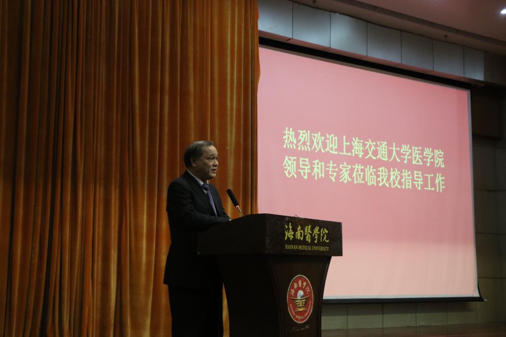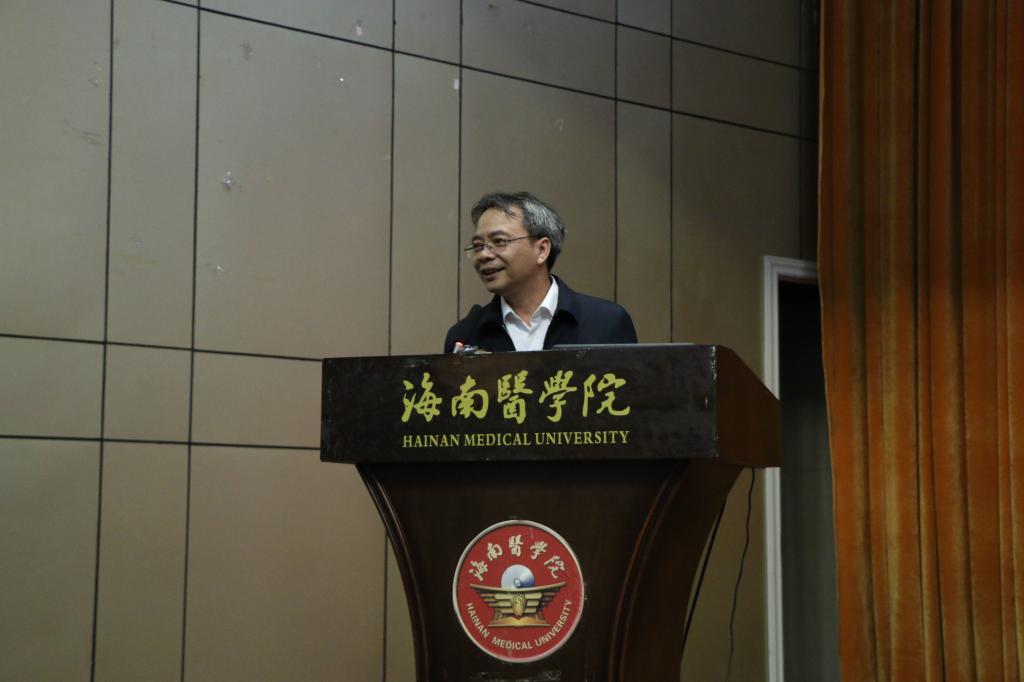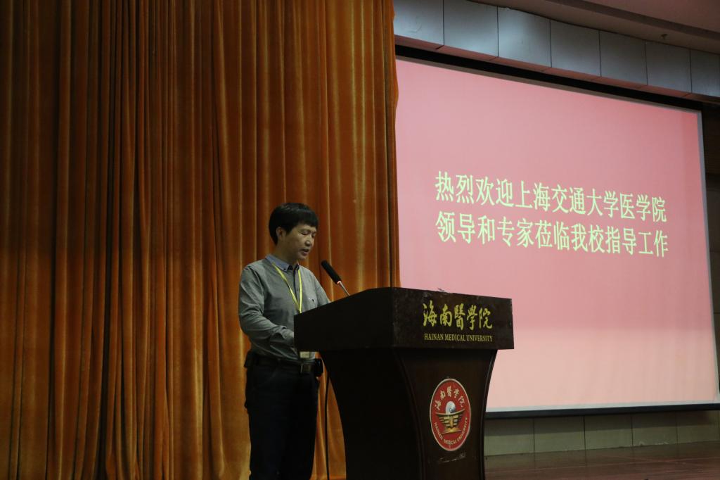 黄元华副院长代表海南医学院致词,他首先感谢上海交通大学医学院领导和专家学者来taptap点点传经送宝,希望taptap点点师生员工借助上海交通大学医学院好的做法和好的经验,转化为自身发展的优势资源,助力海南自由贸易试验区和中国特色自由贸易港建设,实现海南医学院更名医科大学。