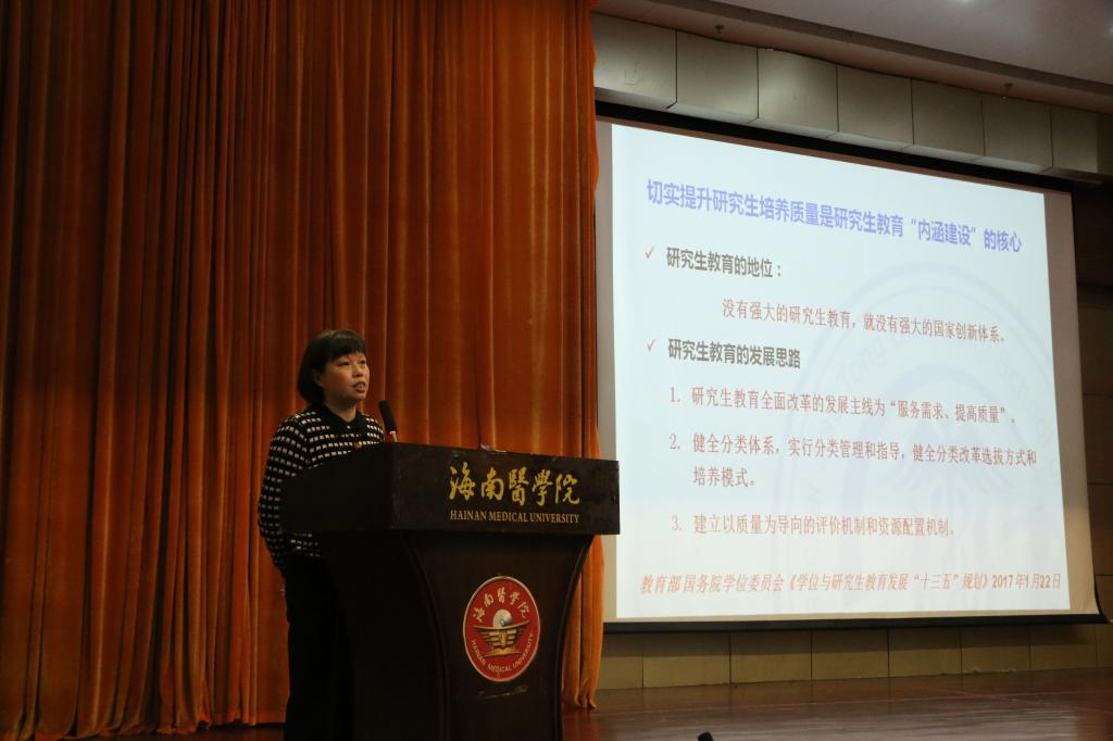 培训会上,来自上海交通大学医学院研究生院、科技处、免微系等医教研管理部门的专家学者,围绕“研究生导师队伍建设”、“研究生的招募、培养与管理”、“科研管理”、“人才特区”等专题,为参加培训会的师生们带来了精彩纷呈的培训课程。上海交通大学医学院吴正一副院长所作的“关于推进与海南医学院对口合建工作的介绍”更是将培训会推向了高潮。他向在场的师生们展示了从海南医学院提出建立对口支援关系,到双方前期合作、确定合作协议内容,再到目前合作协议主要落实情况以及取得的成果。他相信,通过此次交流活动,更加紧密两校的关系,更好地贯彻落实全国教育大会精神和习近平总书记“4.13”重要讲话精神,主动对接国家战略和地方经济社会发展需求,共圆中华民族伟大复兴中国梦的同时,促进两校各自发展目标的实现。