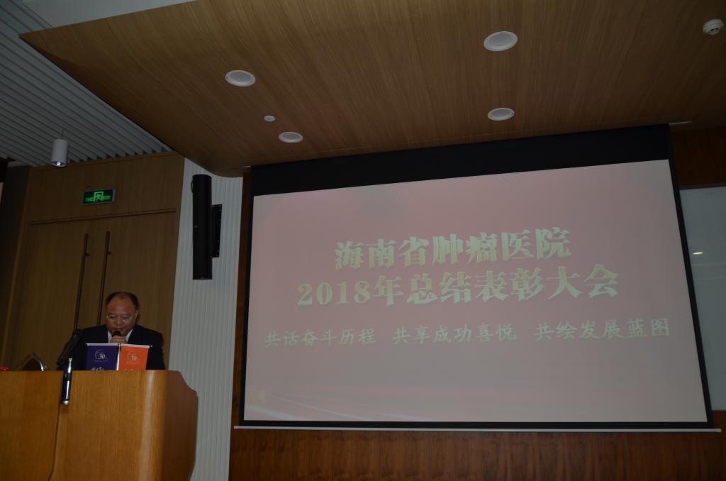 2019年1月25日下午,海南医学院附属肿瘤医院(海南省肿瘤医院)召开2018年总结表彰大会。会议总结2018年工作、部署2019工作,并对2018年在医疗、护理、教学、科研、管理、服务等方面取得突出成绩的集体和个人进行表彰。海南省肿瘤医院理事长蒋会成、常务副院长李富军等医院领导出席会议并讲话。业务副院长余书勇主持会议。