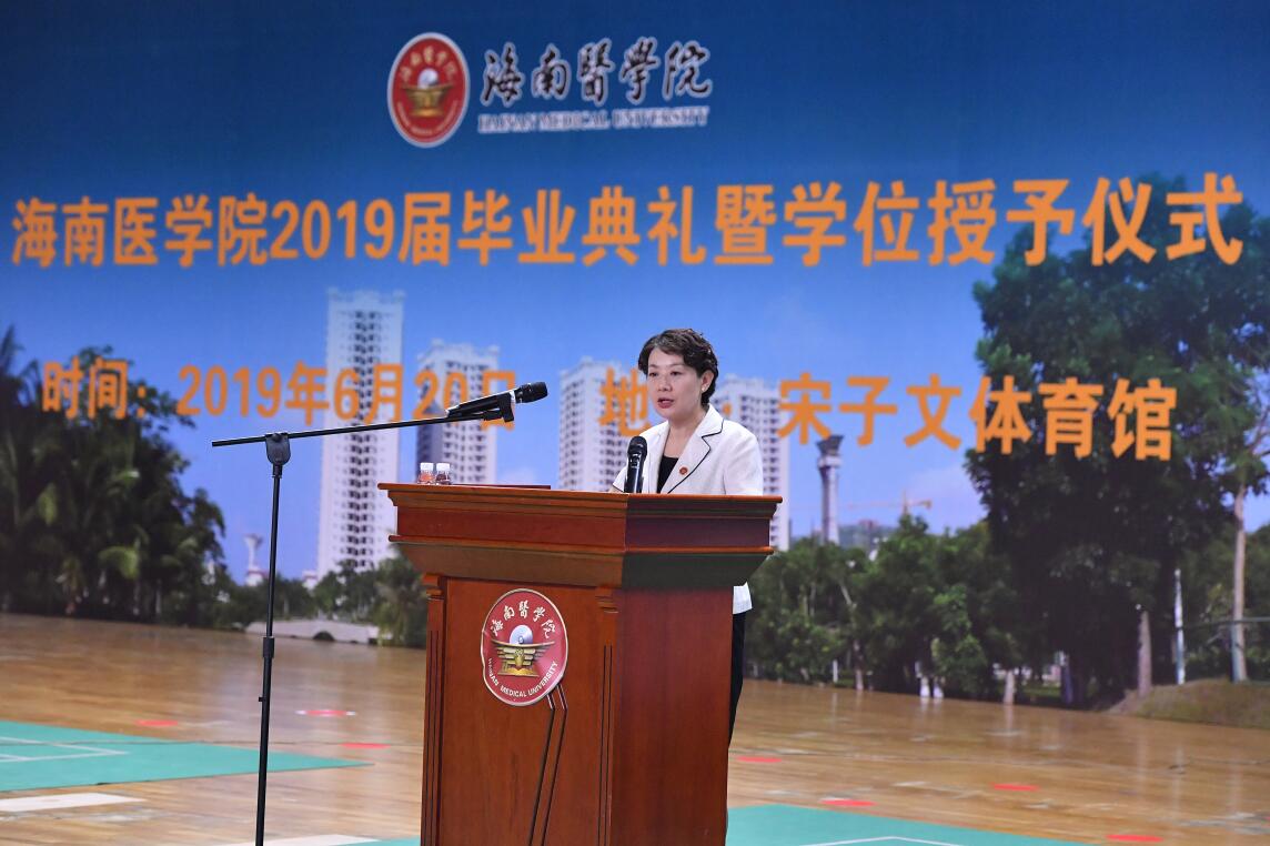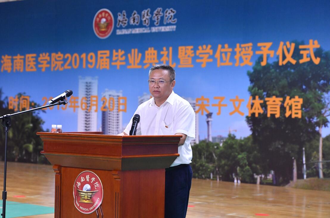 党委副书记、校长杨俊,党委委员、副校长孙晓宁,党委委员、副校长向伟,校长助理龚宁波,附属海南医院副院长欧波,第二附属医院院长王毅,教务处处长谢协驹,学工处处长邝家旺,研究生院院长李孟森等领导出席本次典礼。出席典礼的还有校学位评定委员会委员,各二级学院党政领导,各二级学院学工办主任,毕业班带班辅导员及全体毕业生。