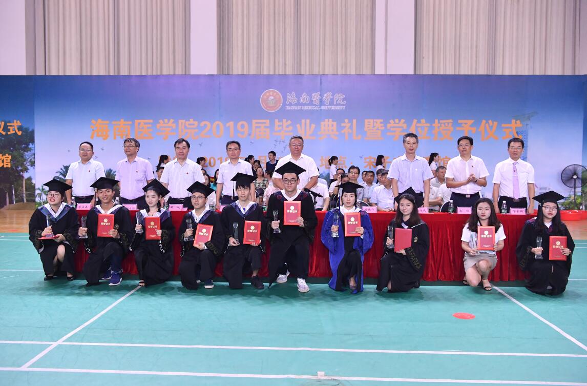 随后,孙晓宁副校长宣读了2019届十佳优秀毕业生名单,校领导为优秀毕业生代表颁发荣誉证书。接着,在急诊创伤学院2014级临床急诊的张继成的带领下,全体毕业生宣读医学生誓言。毕业典礼在全体师生共同唱起海南医学院校歌歌声中正式结束。