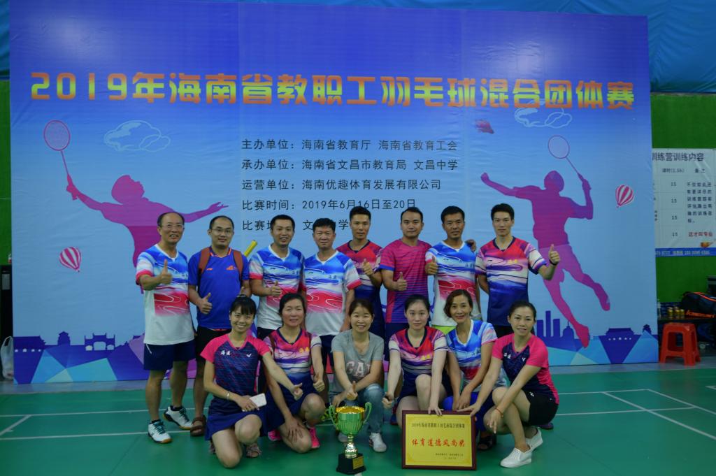 6月19日,由海南省教育厅、海南省教育工会主办,文昌市教育局、文昌中学承办的“2019年海南省教职工羽毛球混合团体赛”在文昌中学圆满落幕。taptap点点夺得高校组亚军,并荣获“体育道德风尚奖”。